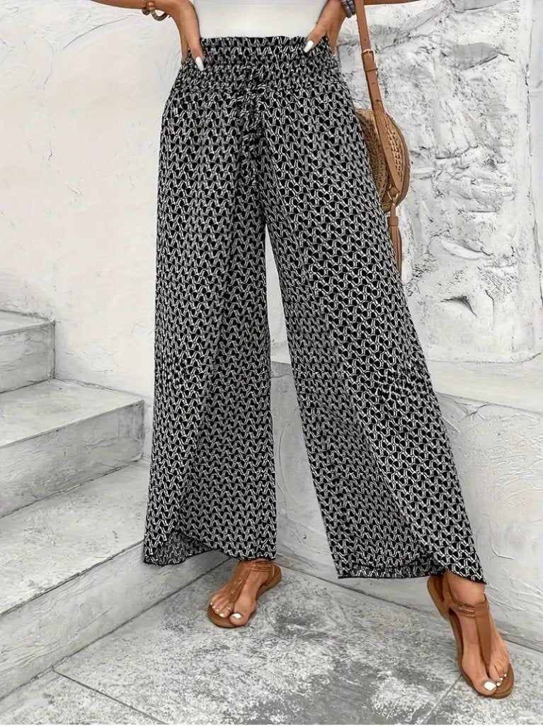 Kadın Yüksek Bel Lastikli önden Iki Parçalı Desenli Bürümcük Pantolon