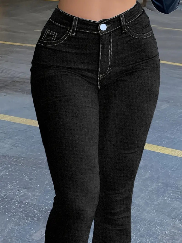 Kadın Yüksek Bel önden Düğmeli Dar Kesim Kot Pantolon