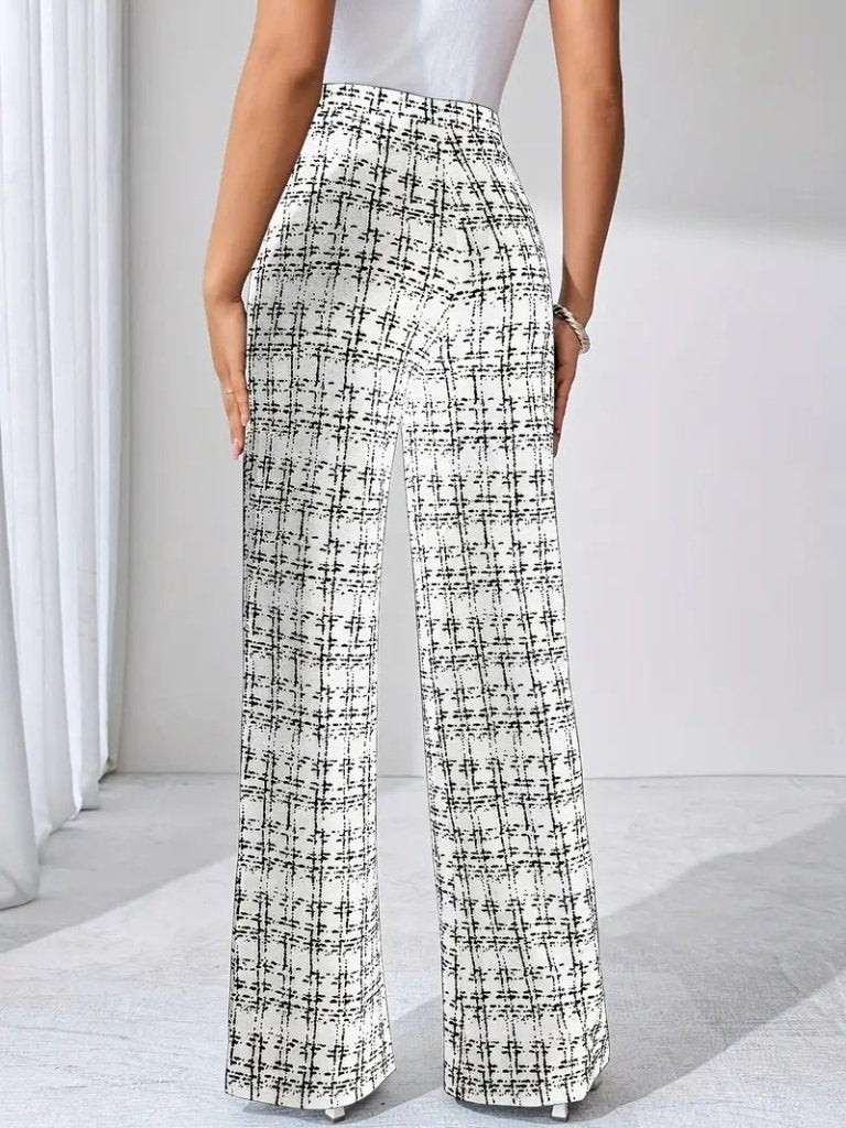 Kadın Yüksek Bel Paçaya Doğru Geniş Dokuma Pantolon
