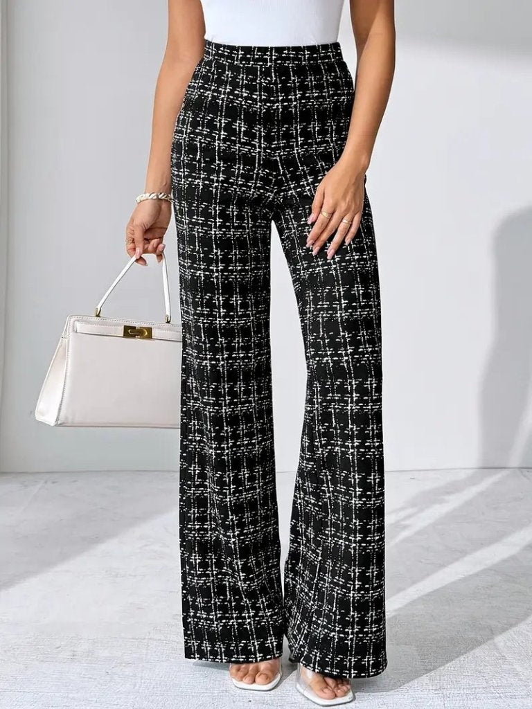 Kadın Yüksek Bel Paçaya Doğru Geniş Dokuma Pantolon