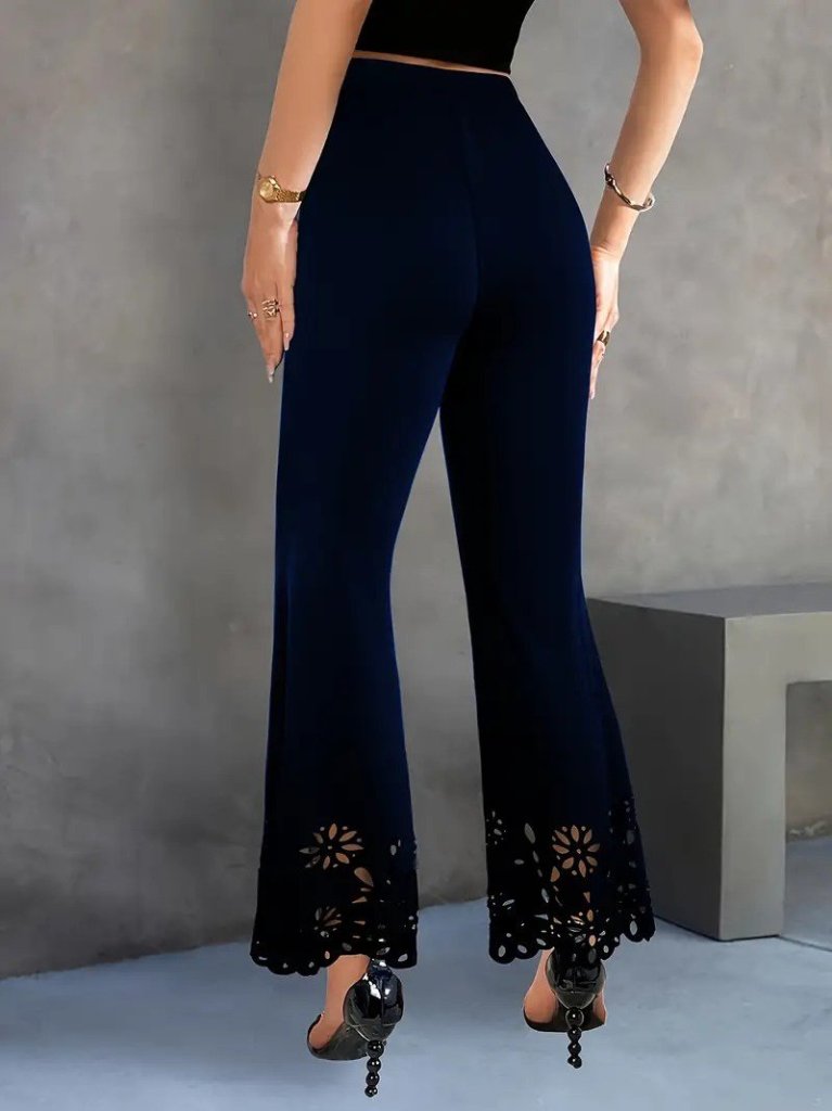 Kadın Yüksek Bel Paçaya Doğru Genişleyen Lazer çiçek Kesim Detaylı Ithal Krep Pantolon