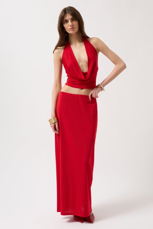 Kadın Kolsuz Boyundan çapraz Geçirmeli Göğüs Damla Detay Kaşkorse Bluz