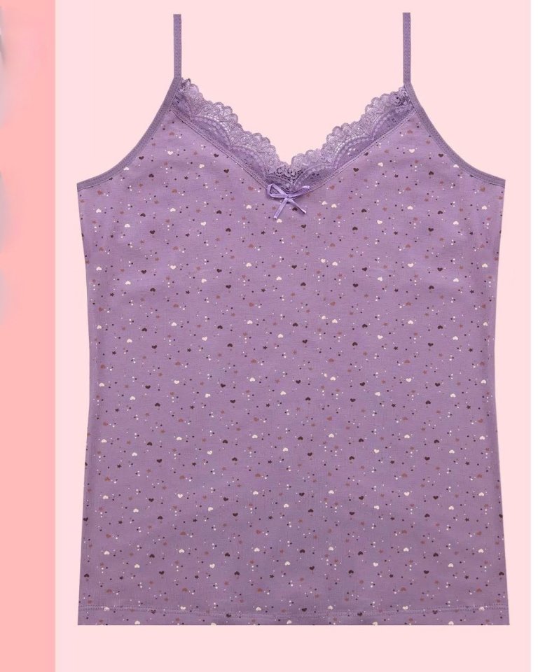 Kalp Desenli Askılı Dantelli Atlet -Mor