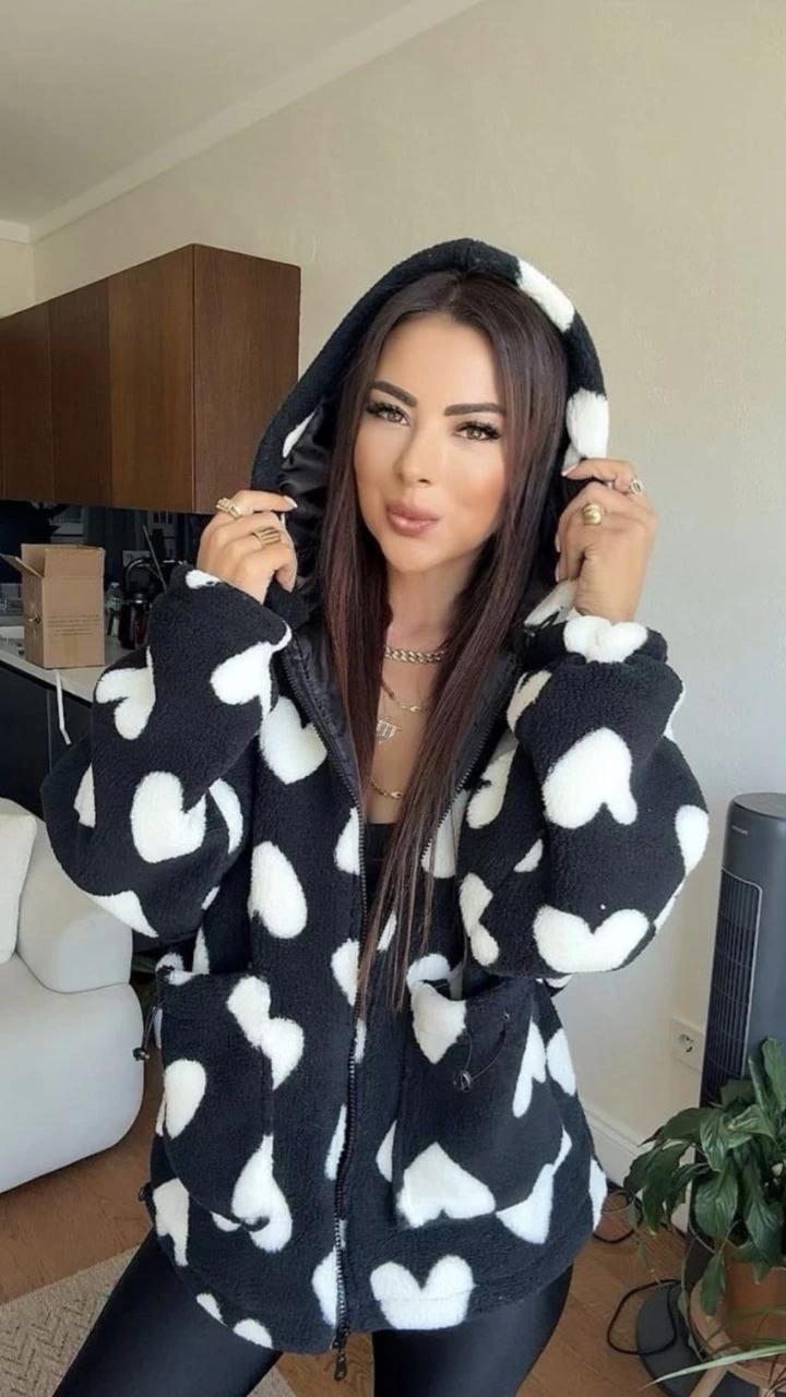 Kalpli peluş ceket içi astarlı siyahbeyaz