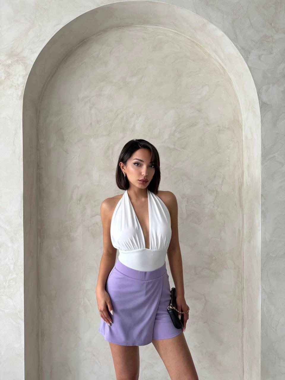 Kadın Kolsuz Boyundan çapraz Geçirmeli Göğüs Damla Detay Kaşkorse Bluz