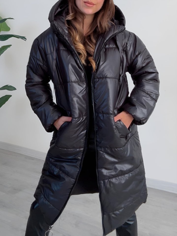 Kapşonlu Bağcık Detaylı Fermuarlı Şişme Mont -Siyah