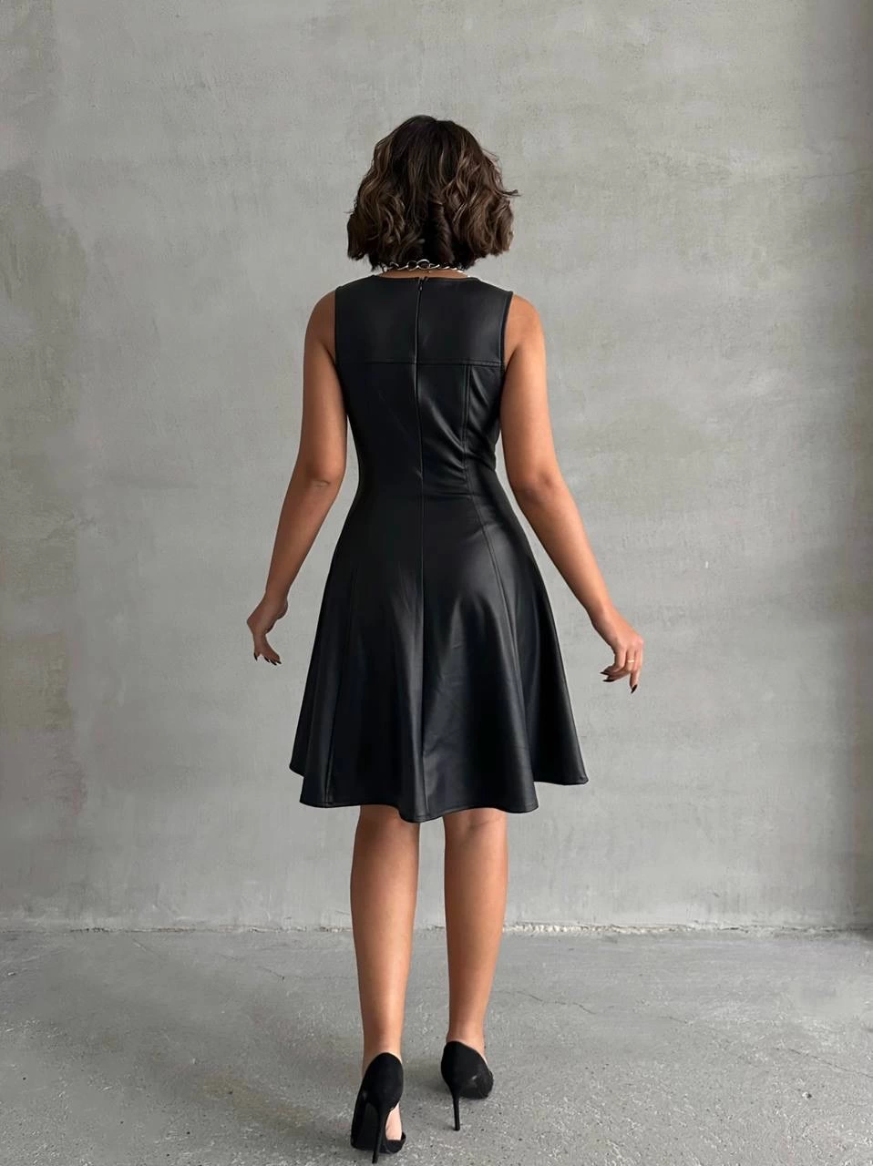 Kadın Kısa Kollu Yakadan Ve Etekten Fermuarlı Midi Viskon Iki Iplik Elbise