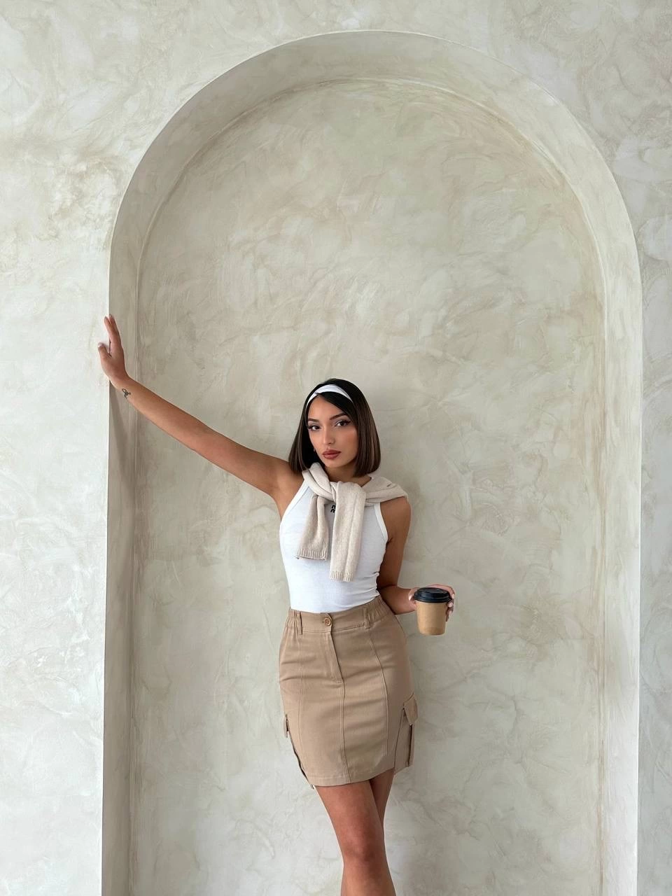 Kadın Kolsuz Boyundan çapraz Geçirmeli Göğüs Damla Detay Kaşkorse Bluz