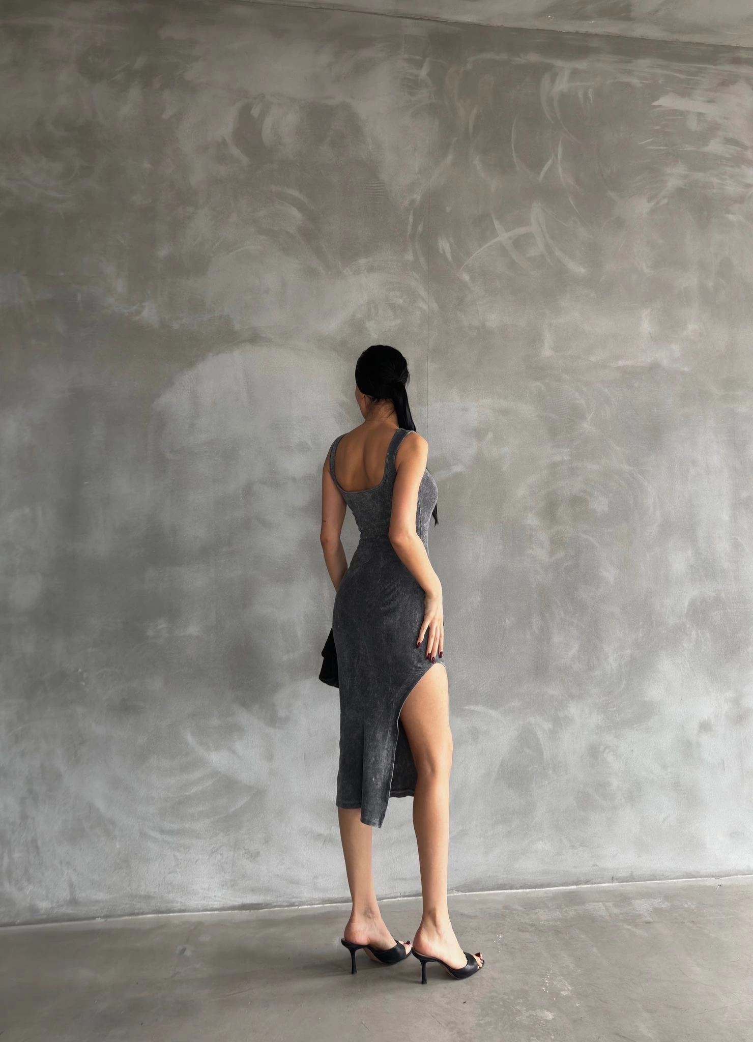 Kaşkorse aşit yıkamalı yırtmaçlı elbise