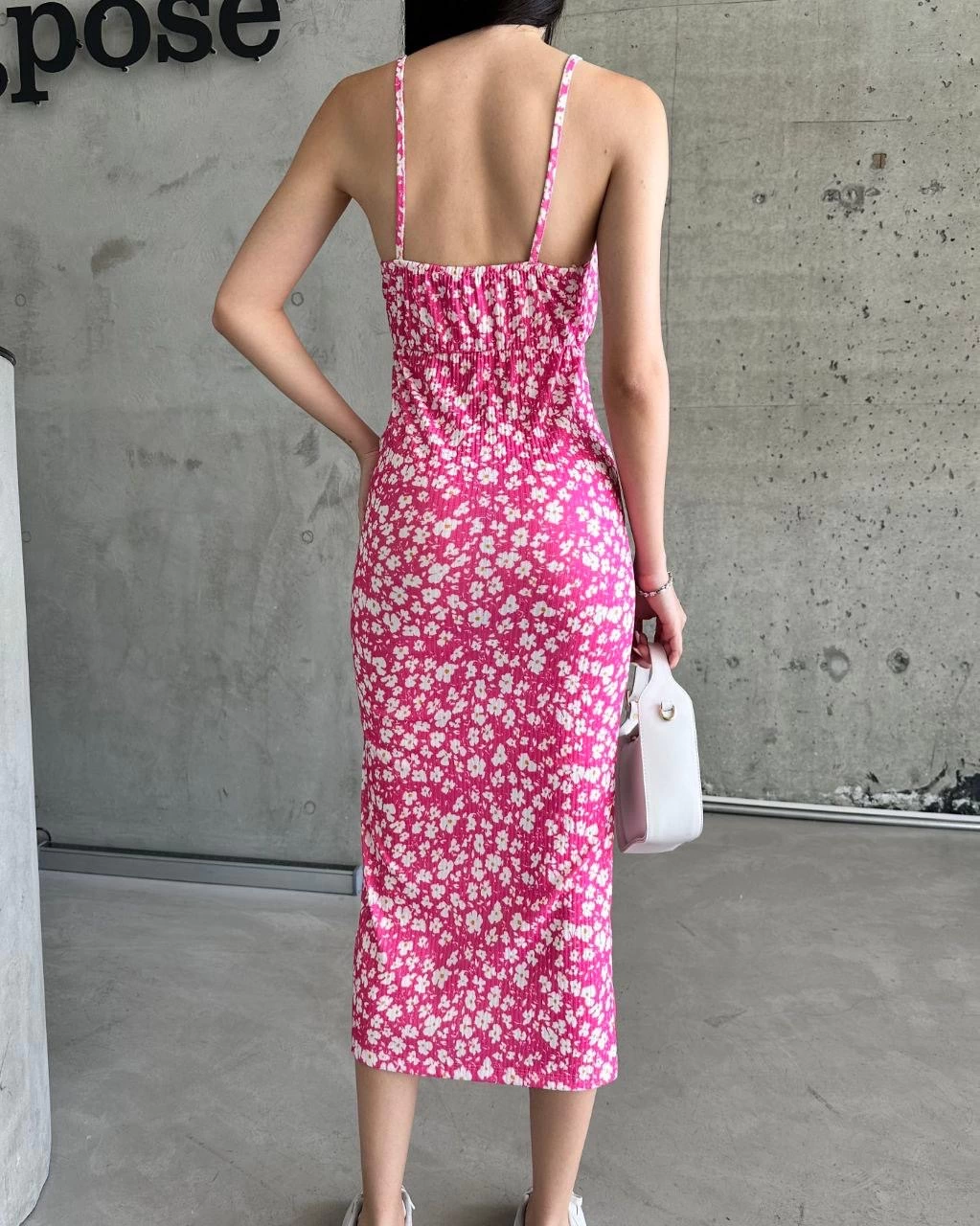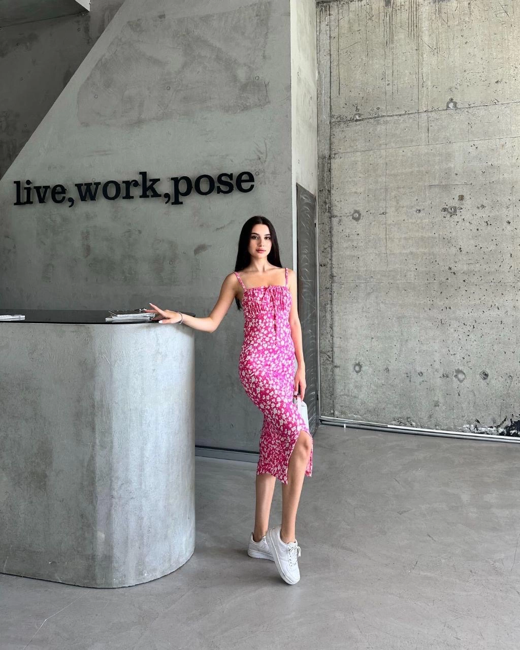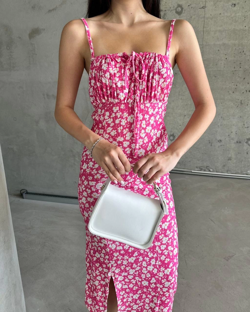 Kadın Askılı Degaje Yakalı Yırtmaçlı Kadife Midi Elbise