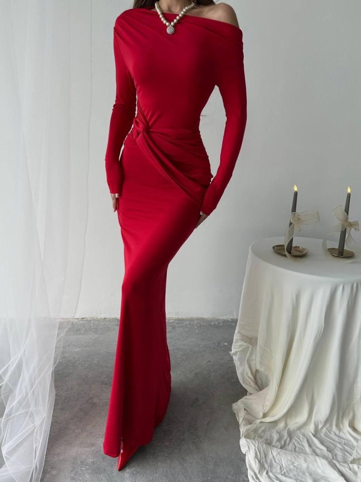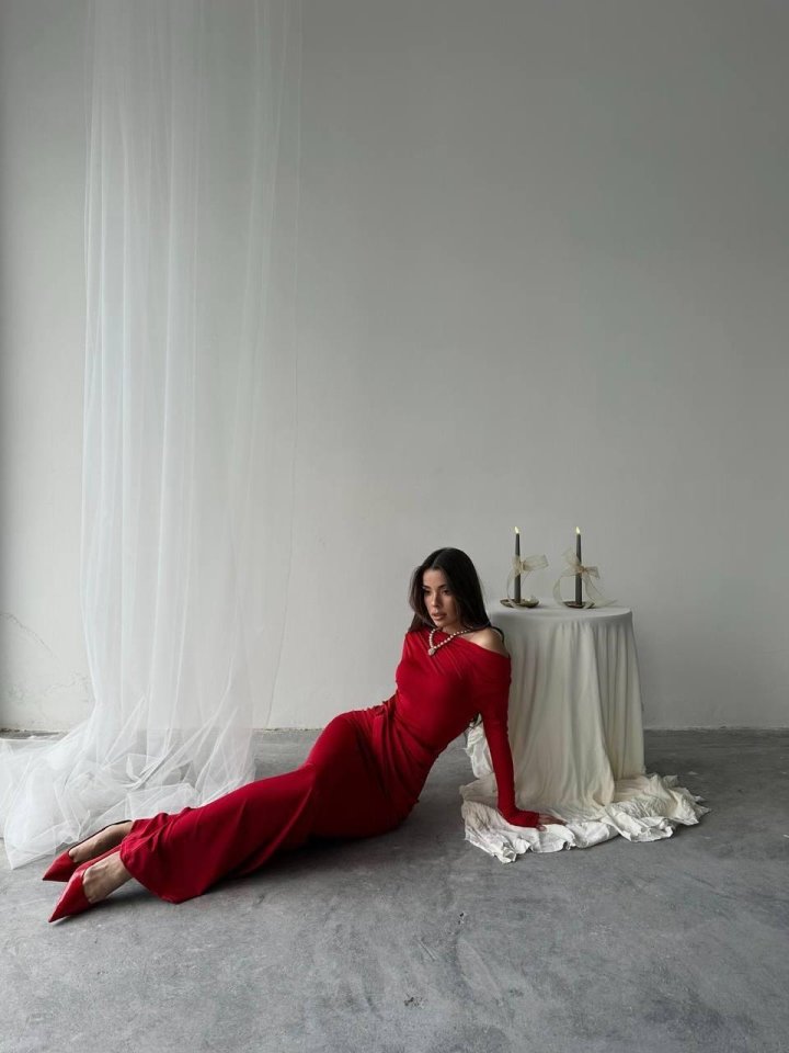 Kadın Tek Omuzdan Açık Uzun Kollu Modal Bluz