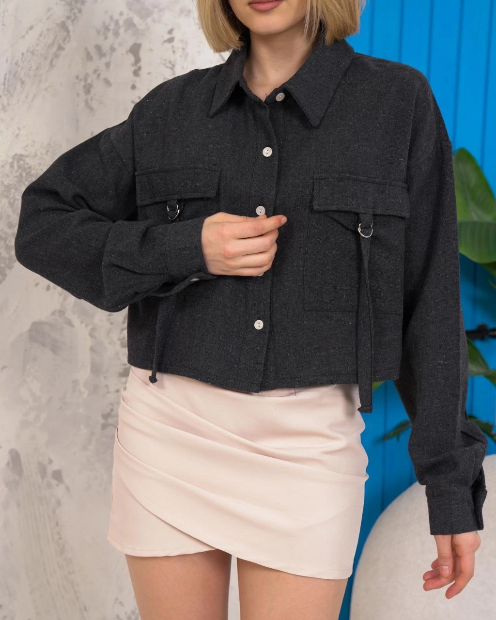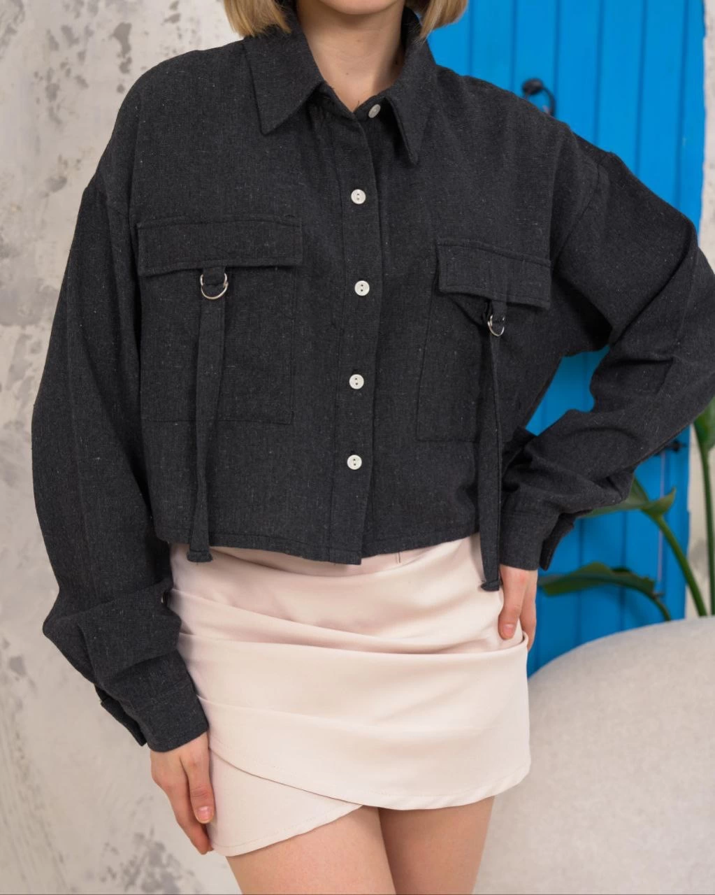 Kemer cepli keten crop gömlek siyah s255350