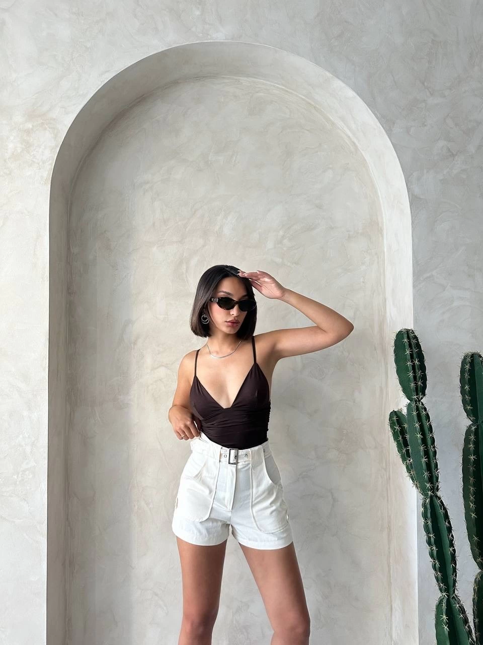 Kemer detaylı gabardin şort krem s25289