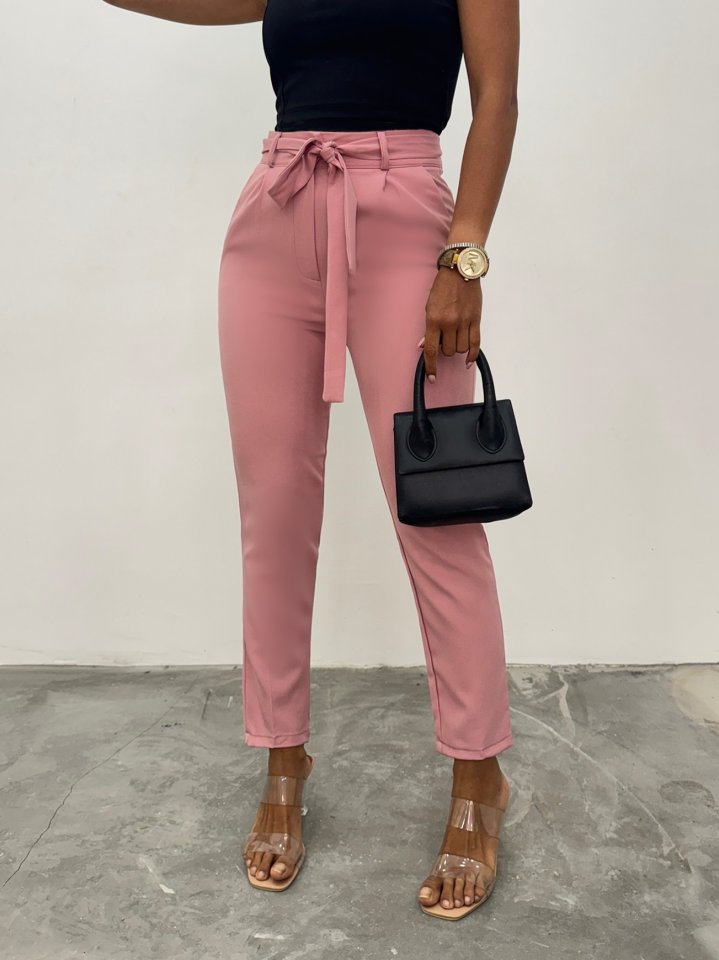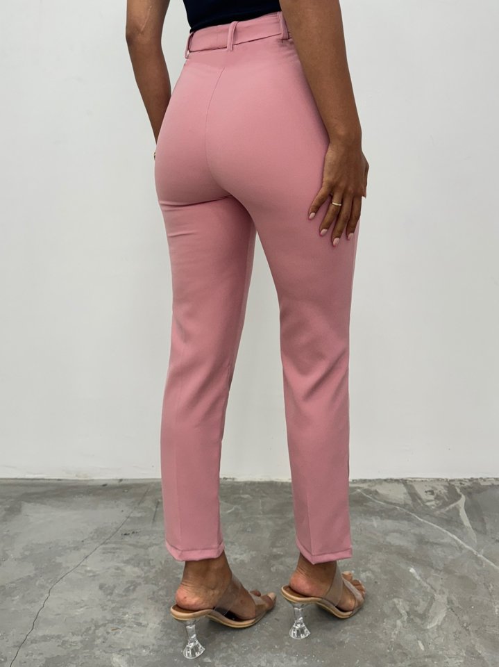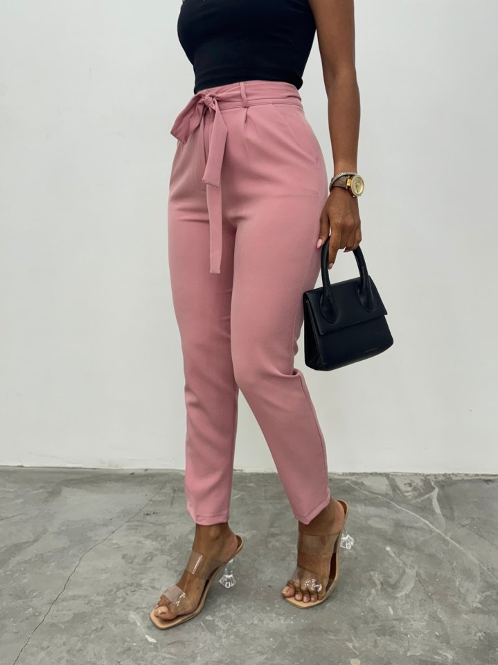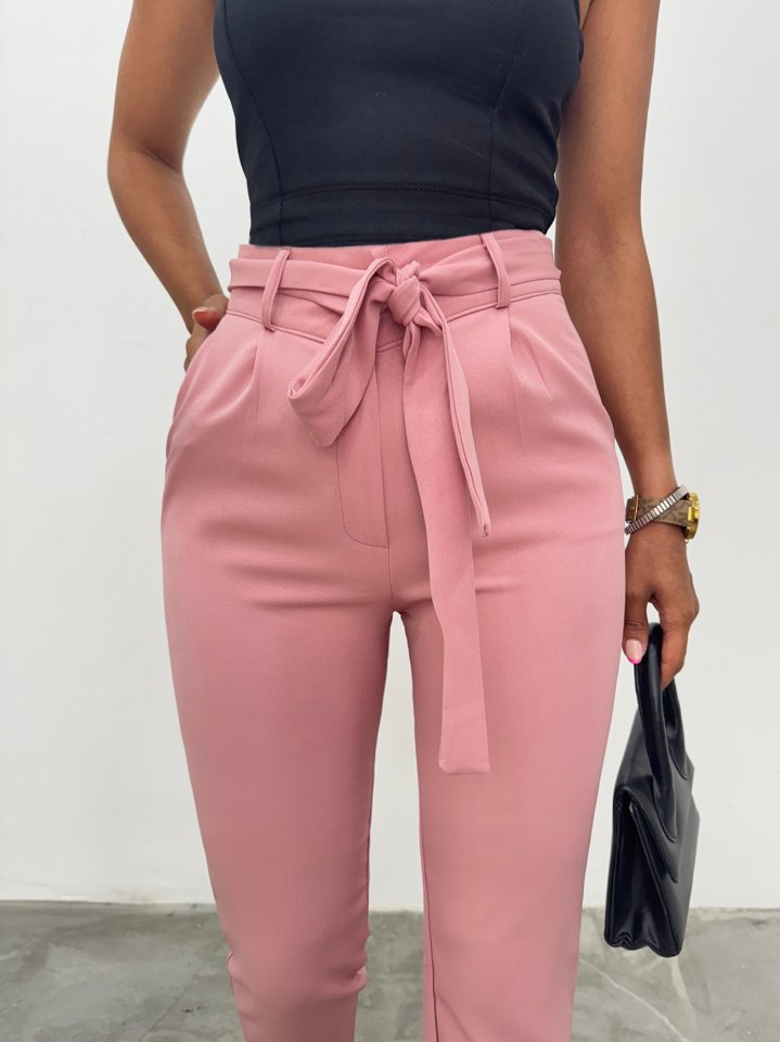 Kemerli Bilek Pantolon -Pudra