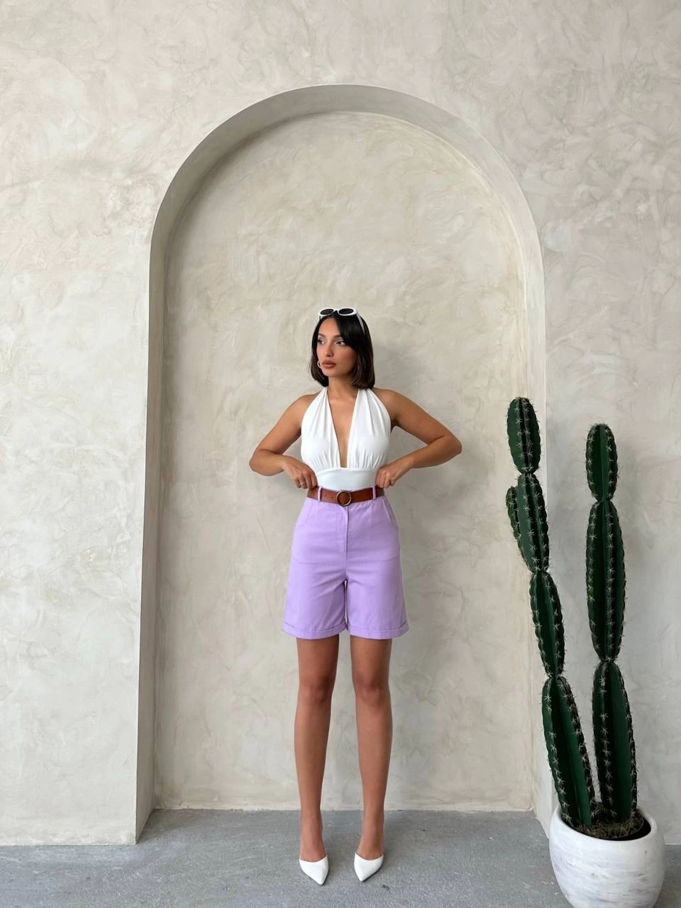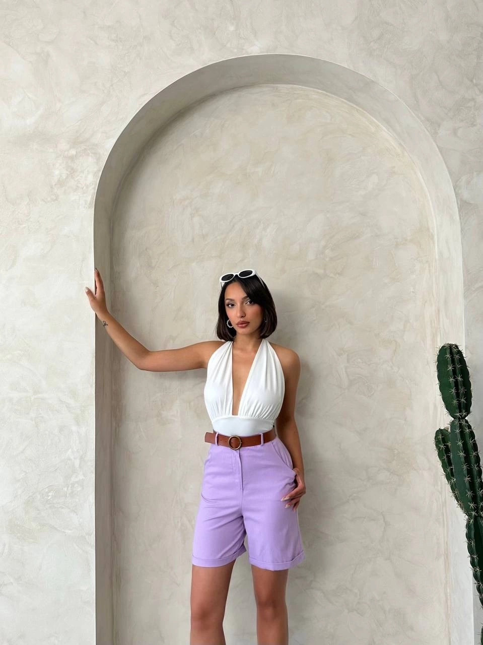 Kadın Kolsuz Boyundan çapraz Geçirmeli Göğüs Damla Detay Kaşkorse Bluz