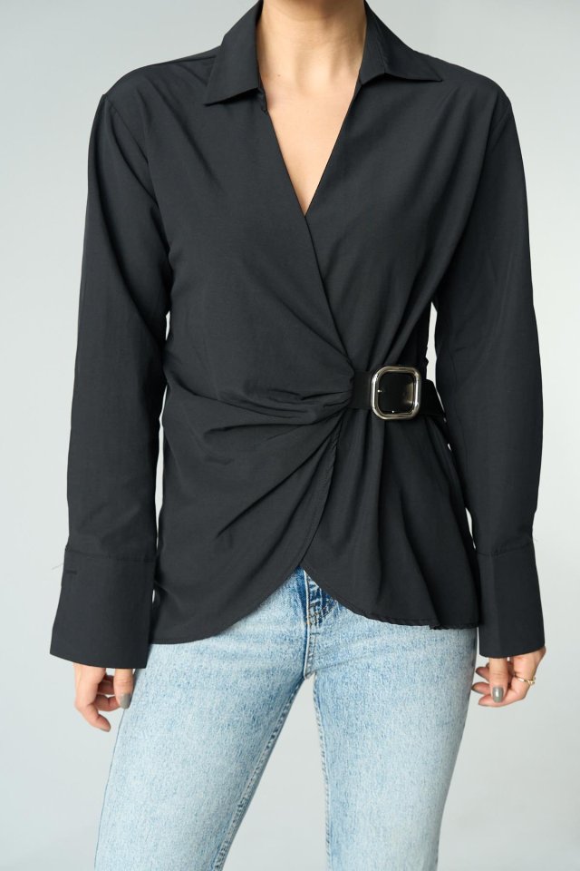Kadın Uzun Kollu Kruvaze Yakalı Incili şardonlu Kaşkorse Bluz