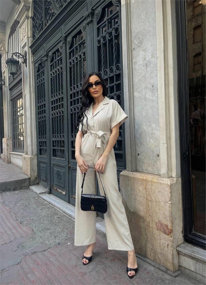 KETEN TULUM BEL BAĞLAMA DETAYLI - Krem