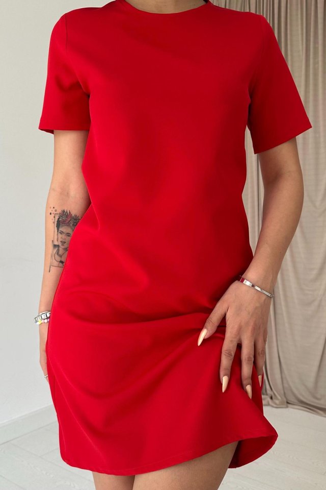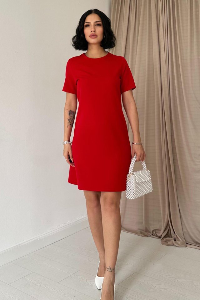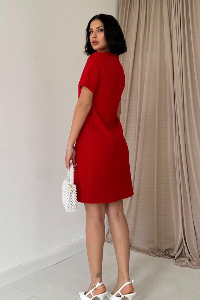 Kırmızı Kısa Kol Atlas Mini Elbise