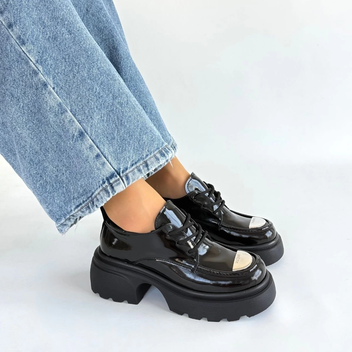 Kiya Siyah Rugan Dolgu Topuk Oxford Ayakkabı