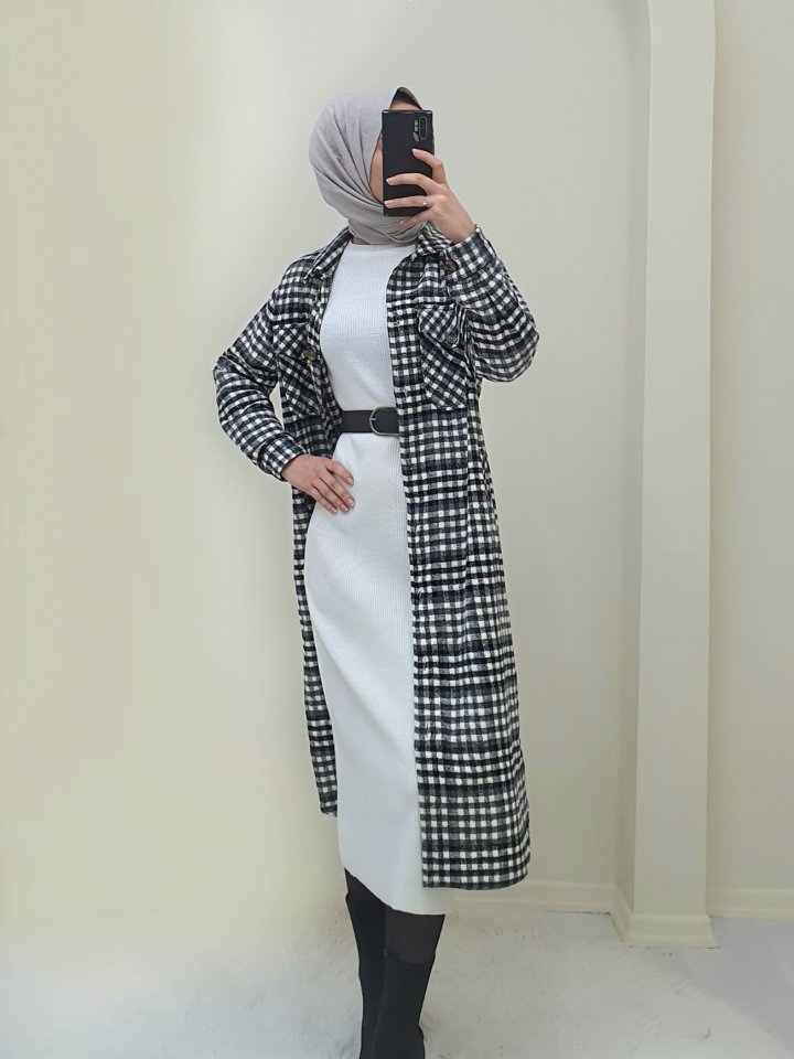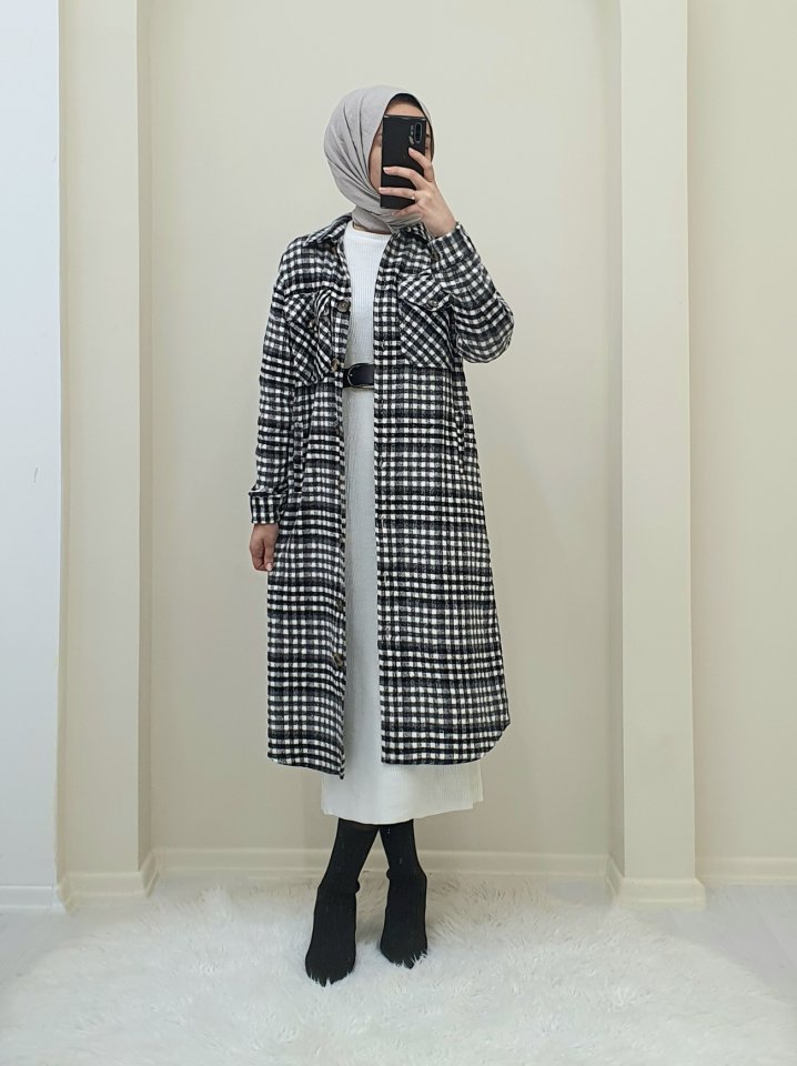 Kolları Katlanabilir Cepli Uzun Gömlek Ceket -Füme