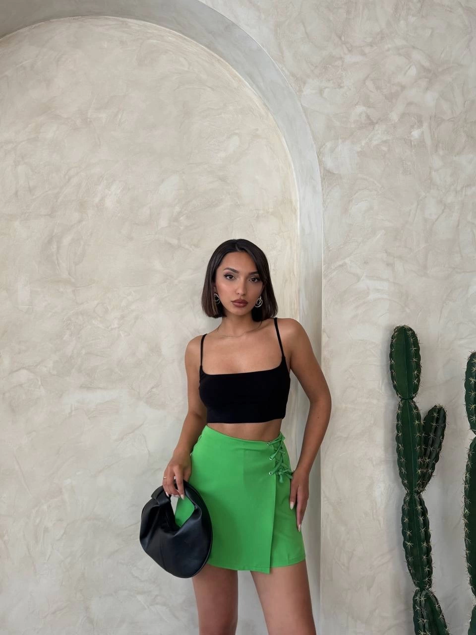 Kadın Kolsuz Boyundan çapraz Geçirmeli Göğüs Damla Detay Kaşkorse Bluz