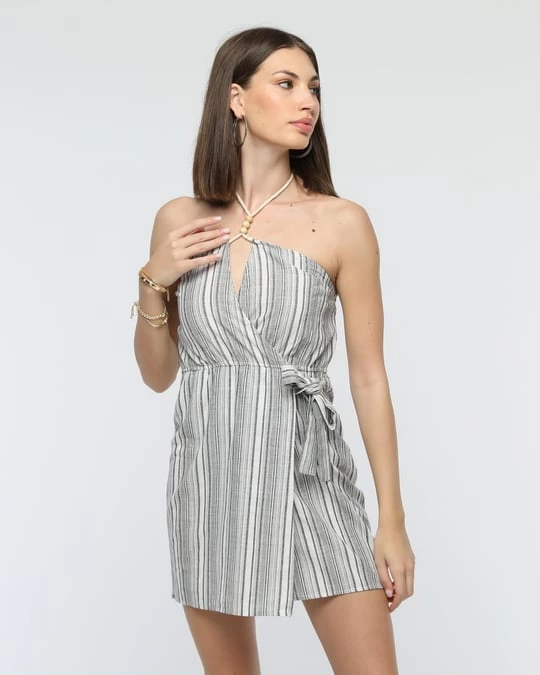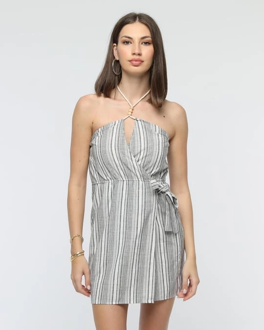 Kadın Kolsuz Boyundan çapraz Geçirmeli Göğüs Damla Detay Kaşkorse Bluz