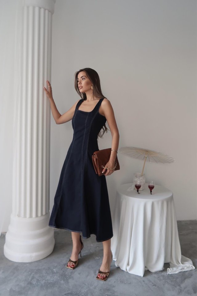 Kadın Kısa Kollu Yakadan Ve Etekten Fermuarlı Midi Viskon Iki Iplik Elbise