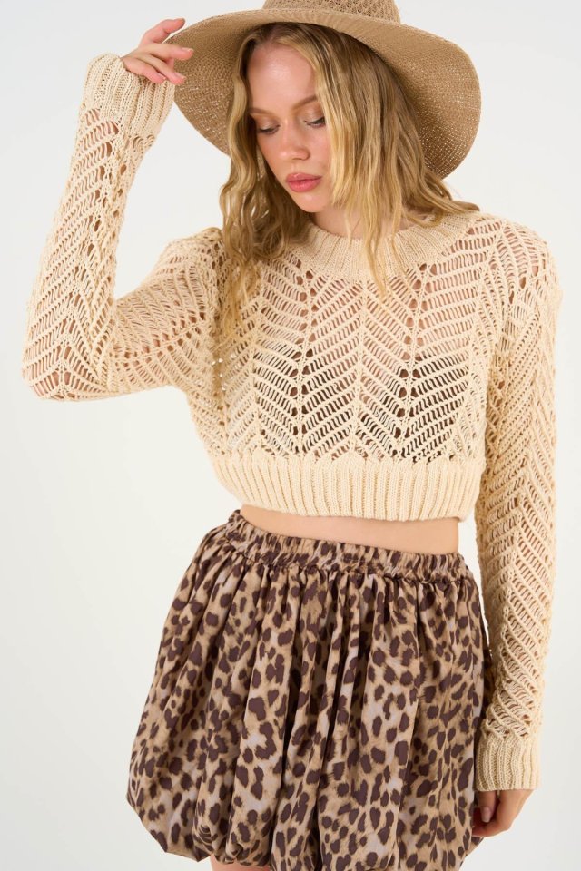 Kadın Uzun Kollu Bisiklet Yaka Desenli Viskon Iki Iplik Bluz