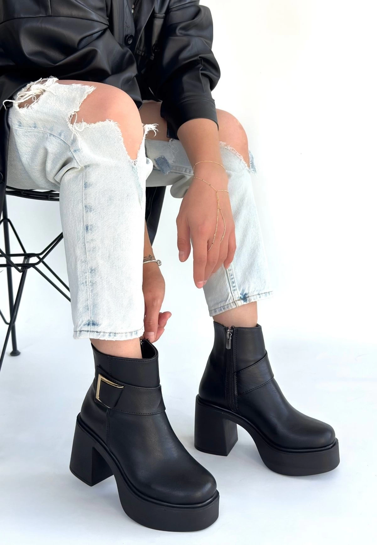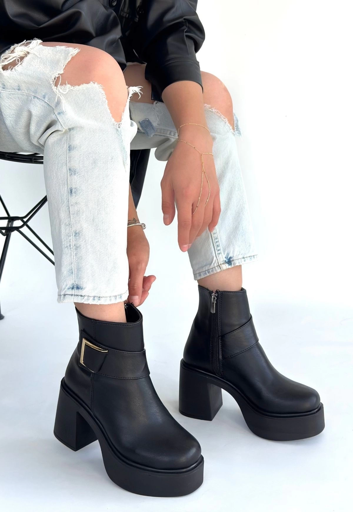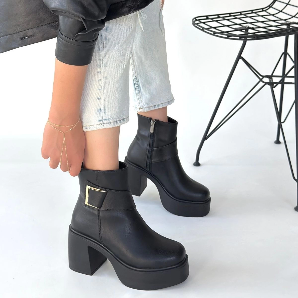 Lonji Siyah Cilt Topuklu Bot