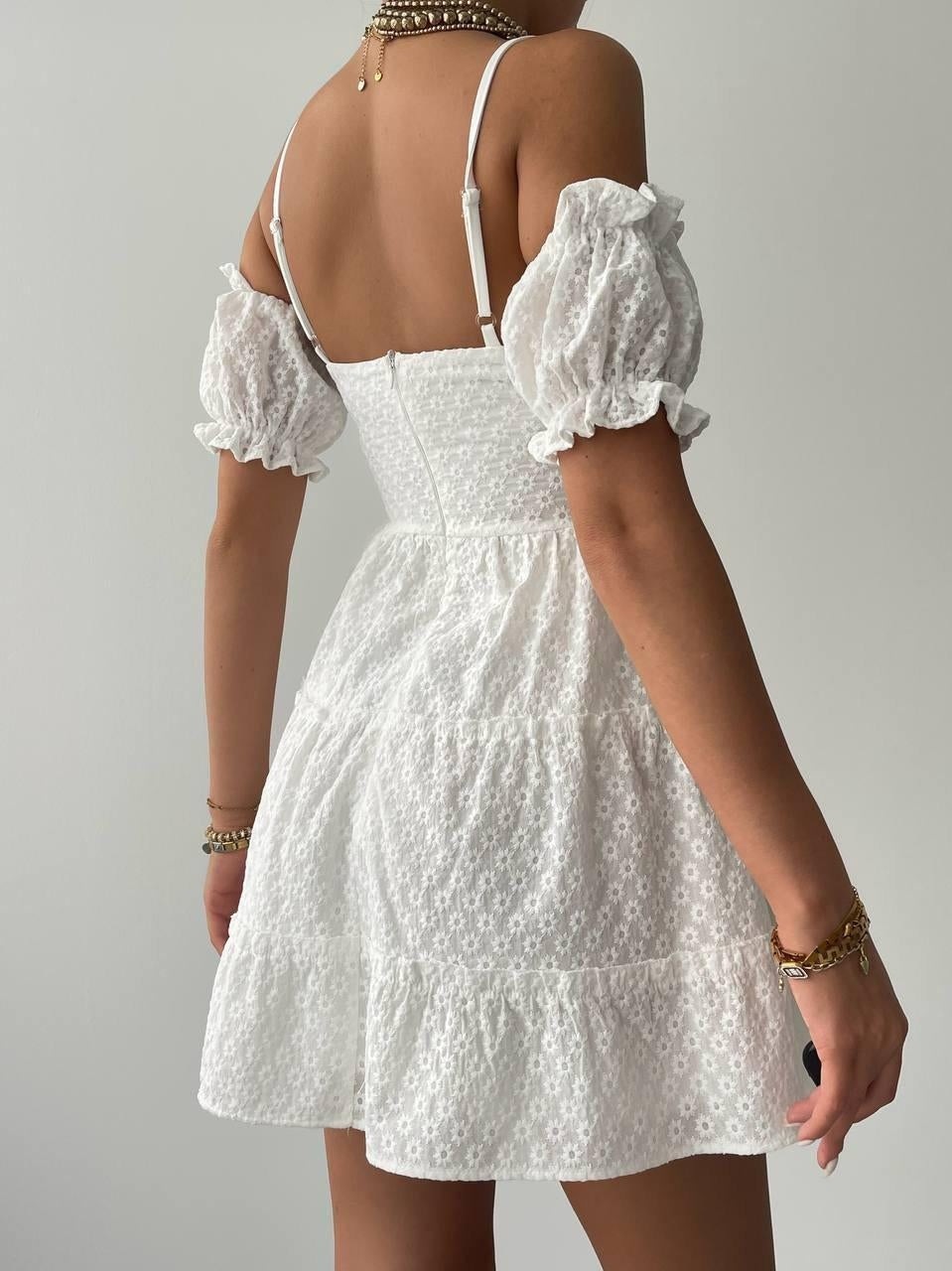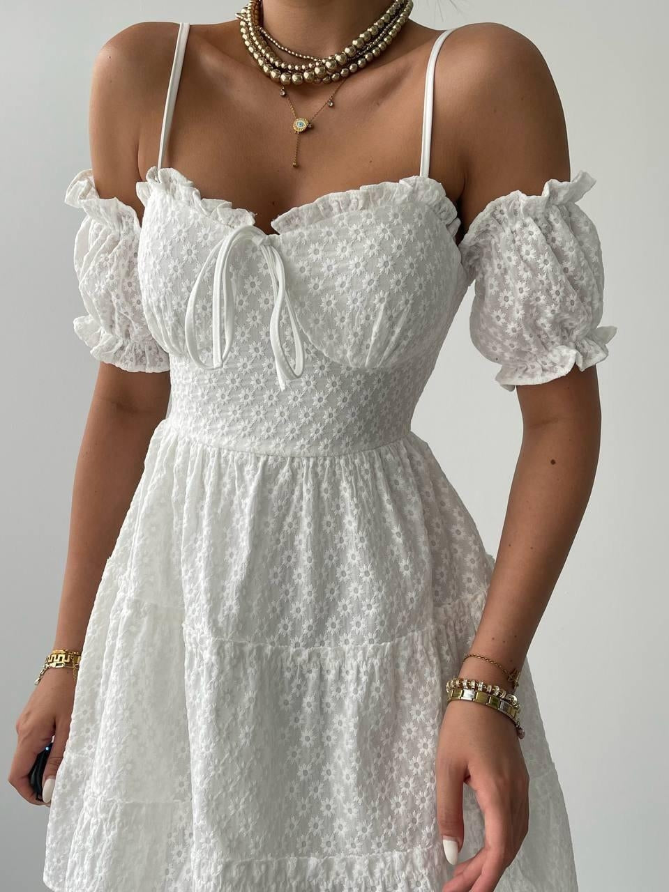 Kadın Kısa Kollu Yakası Açık Katlı Bürümcük Balon Elbise