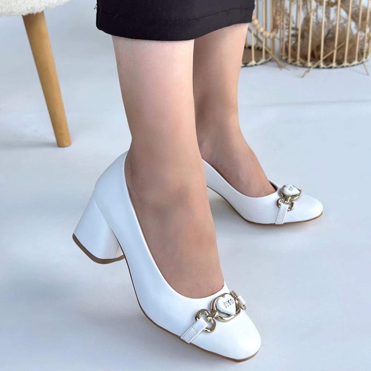 Lucky Beyaz Cilt Topuklu Ayakkabı