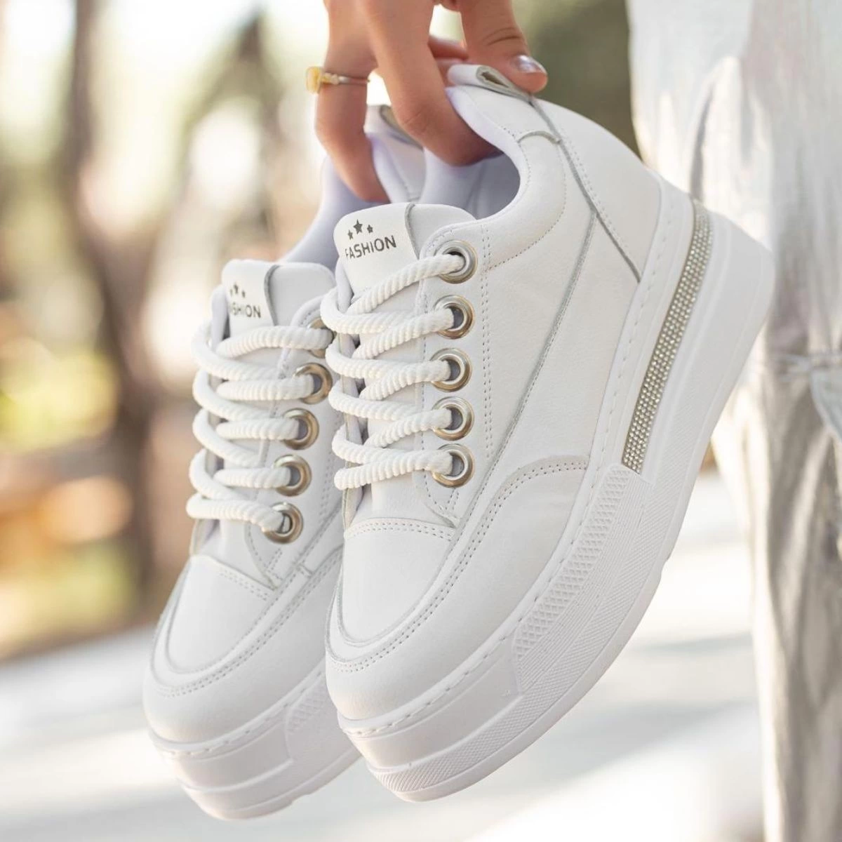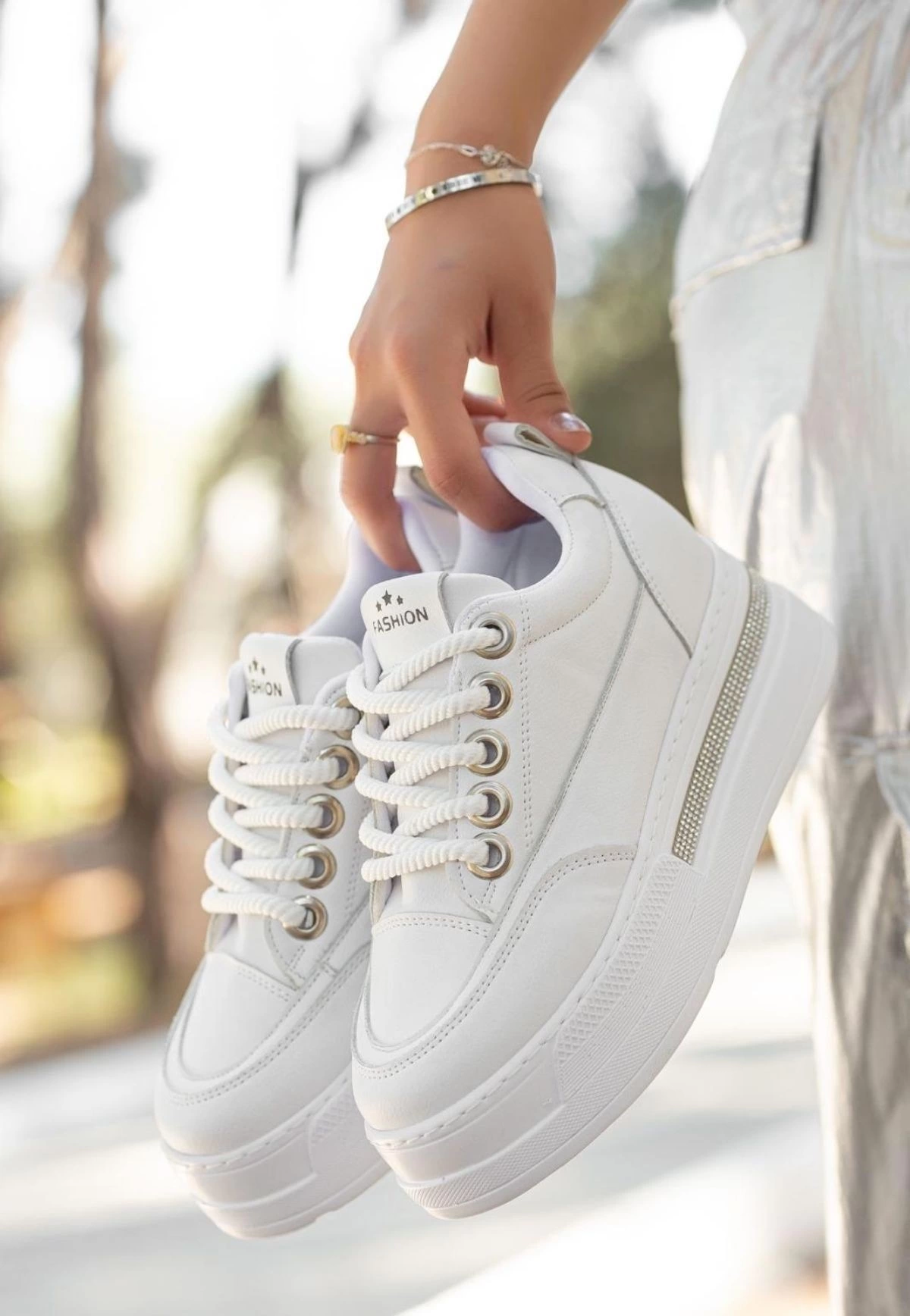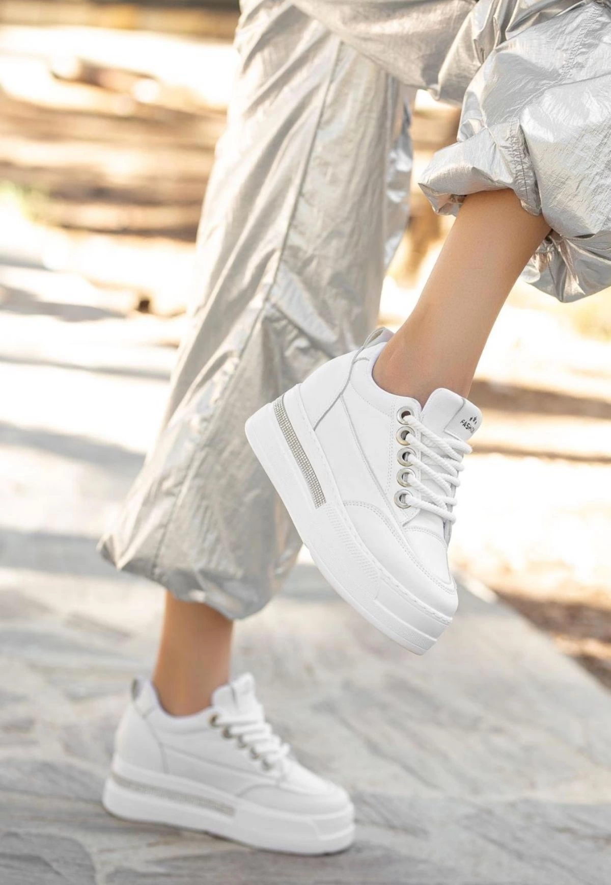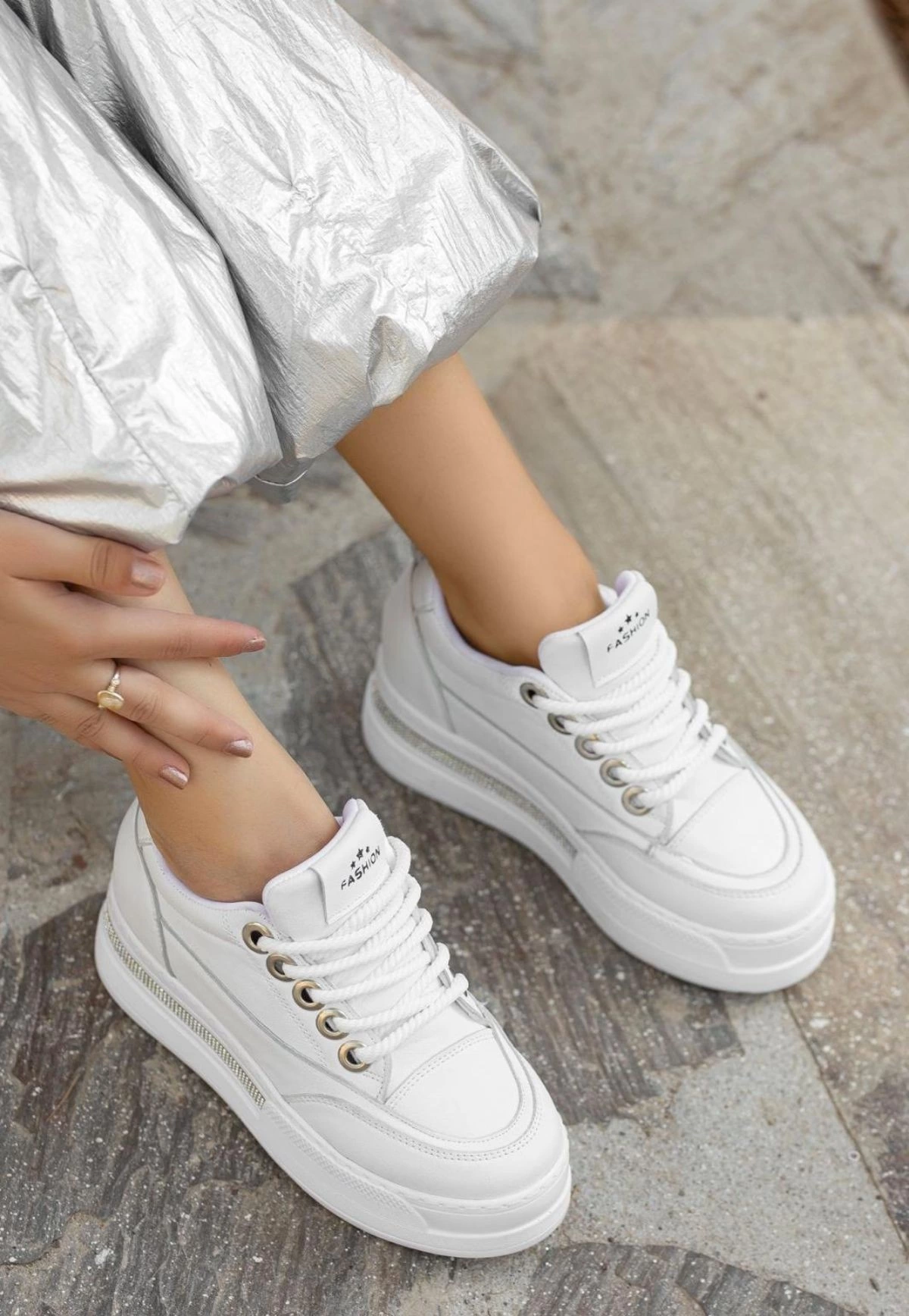 Lulu Beyaz Cilt Bağcıklı Spor Ayakkabı