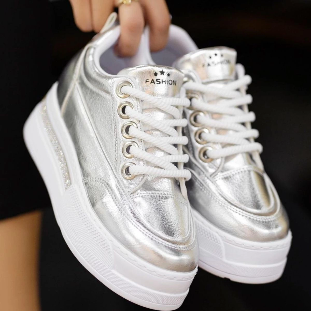 Lulu Gümüş Rugan Bağcıklı Spor Ayakkabı