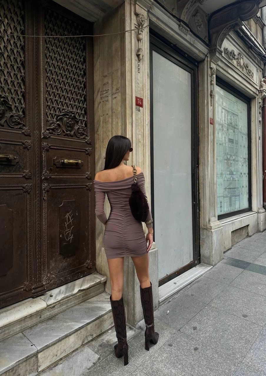 Kadın Madonna Mendil Yaka Fırsat ürün Büzgülü Mini Elbise