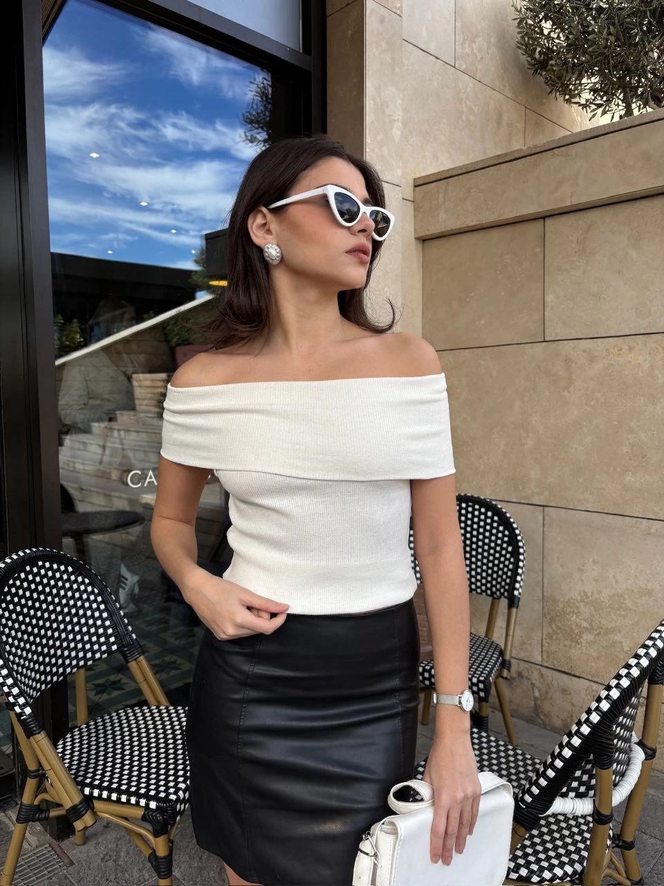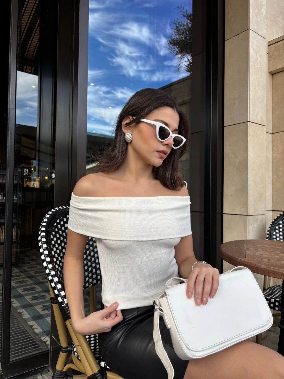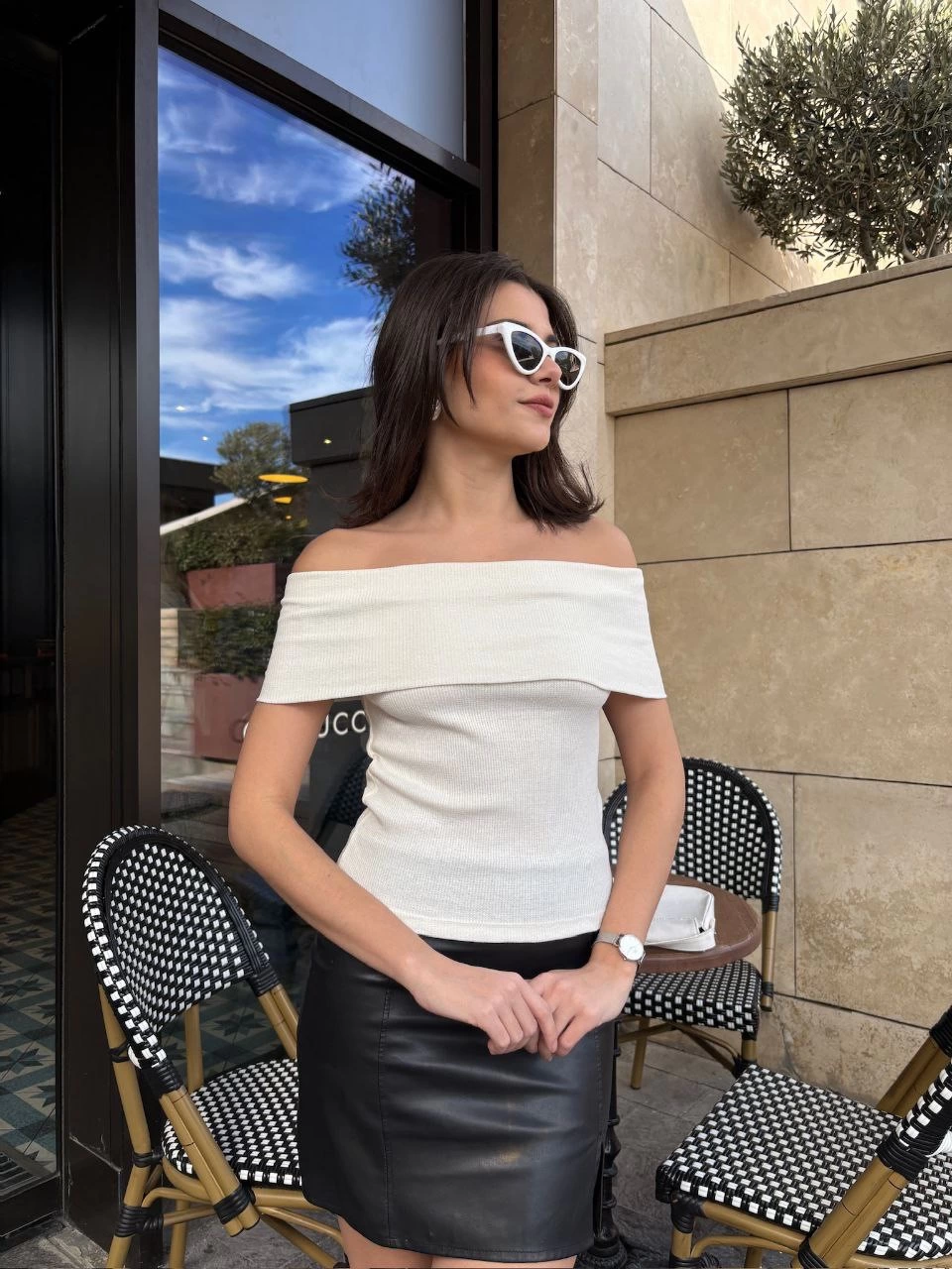 Kadın Tek Omuzdan Açık Uzun Kollu Modal Bluz