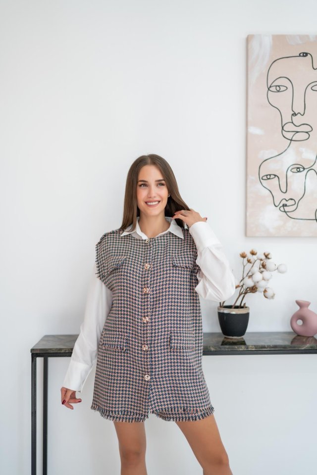 Crop Ceketli Ve Pile Etekli Garnili Takım 10111
