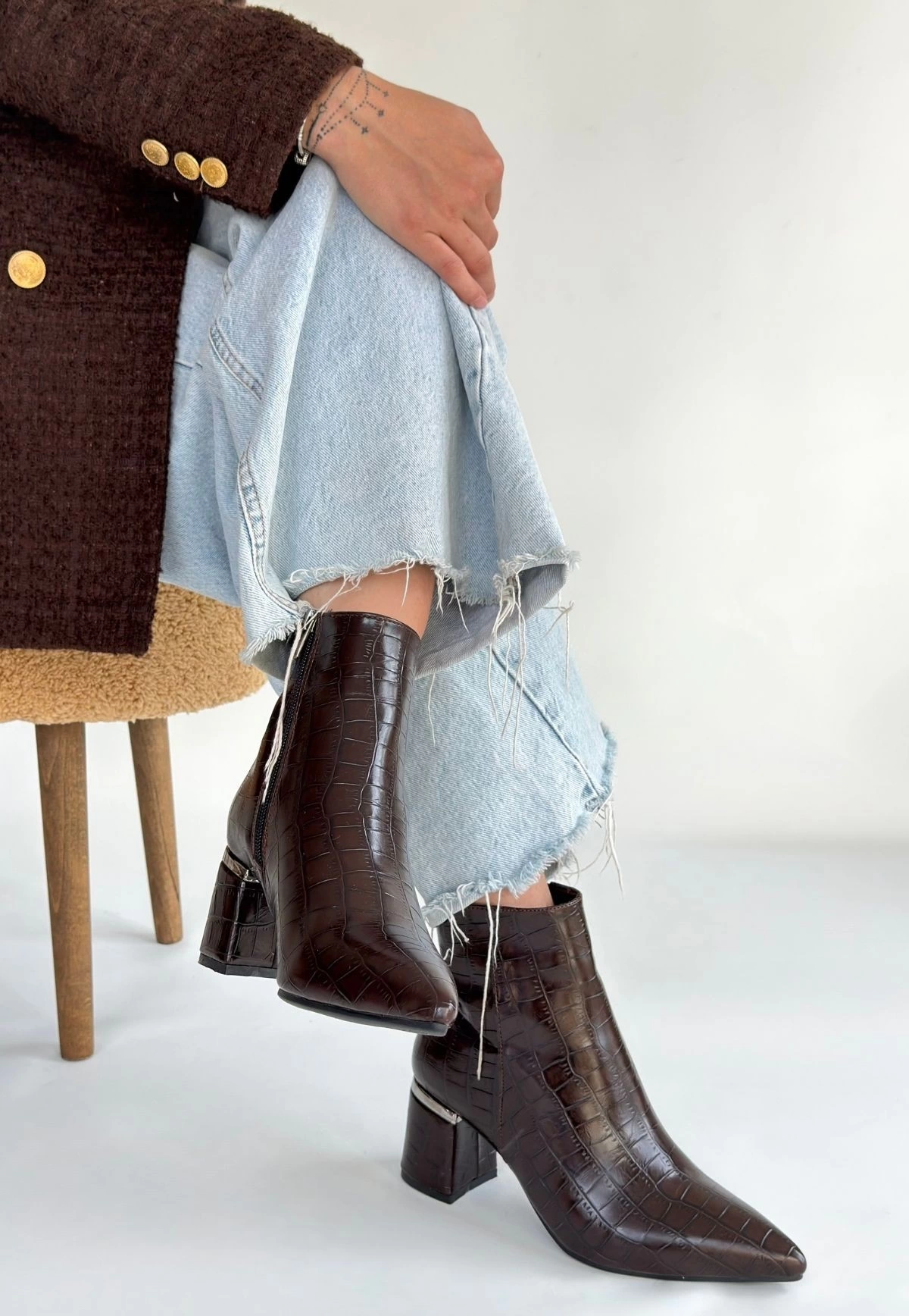 Meça Kahverengi Cilt Topuklu Bot