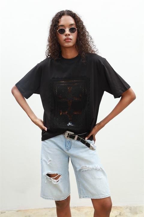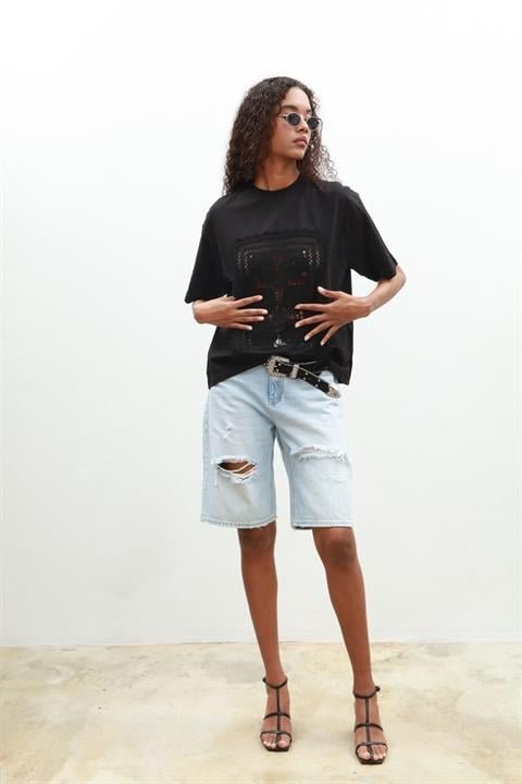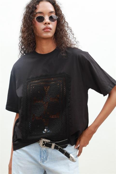 Melasti Motifli Brodeli Tişört 8019-8