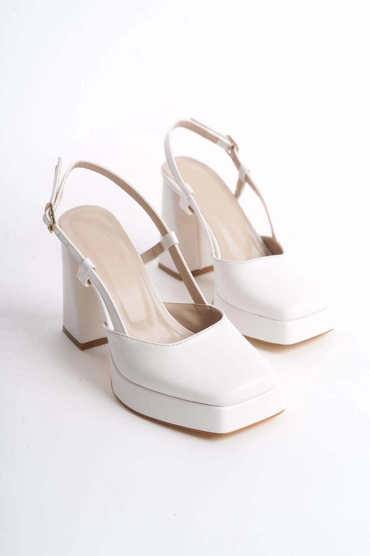Mety Beyaz Cilt Topuklu Ayakkabı