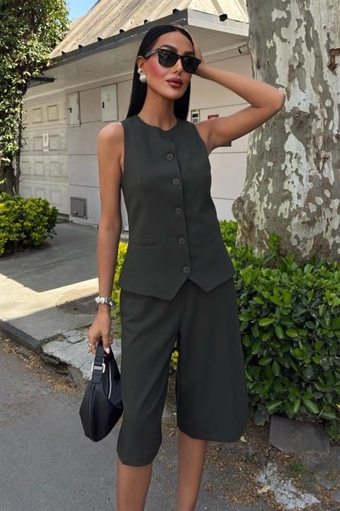 Midi Şortlu Ve Yelekli Viscon Takım 10167
