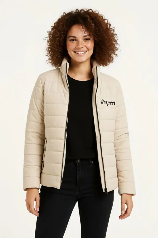 Mikro Su İtici Kapitone Baskılı Astarlı Fermuarlı Bomber Mont - Bej