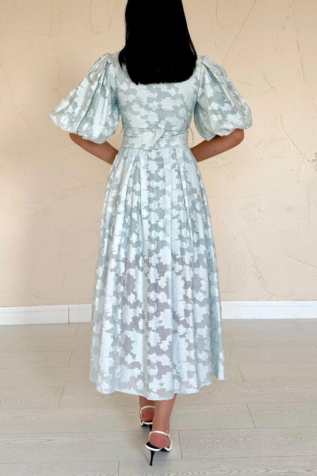 Kadın Kısa Kollu Yakası Açık Katlı Bürümcük Balon Elbise