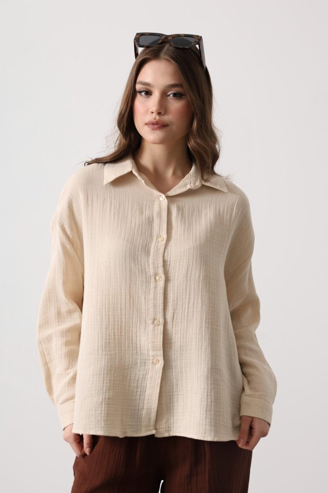 Kadın Uzun Kollu Tek Omuz Askı Detay Salaş Viskon Iki Iplik Bluz