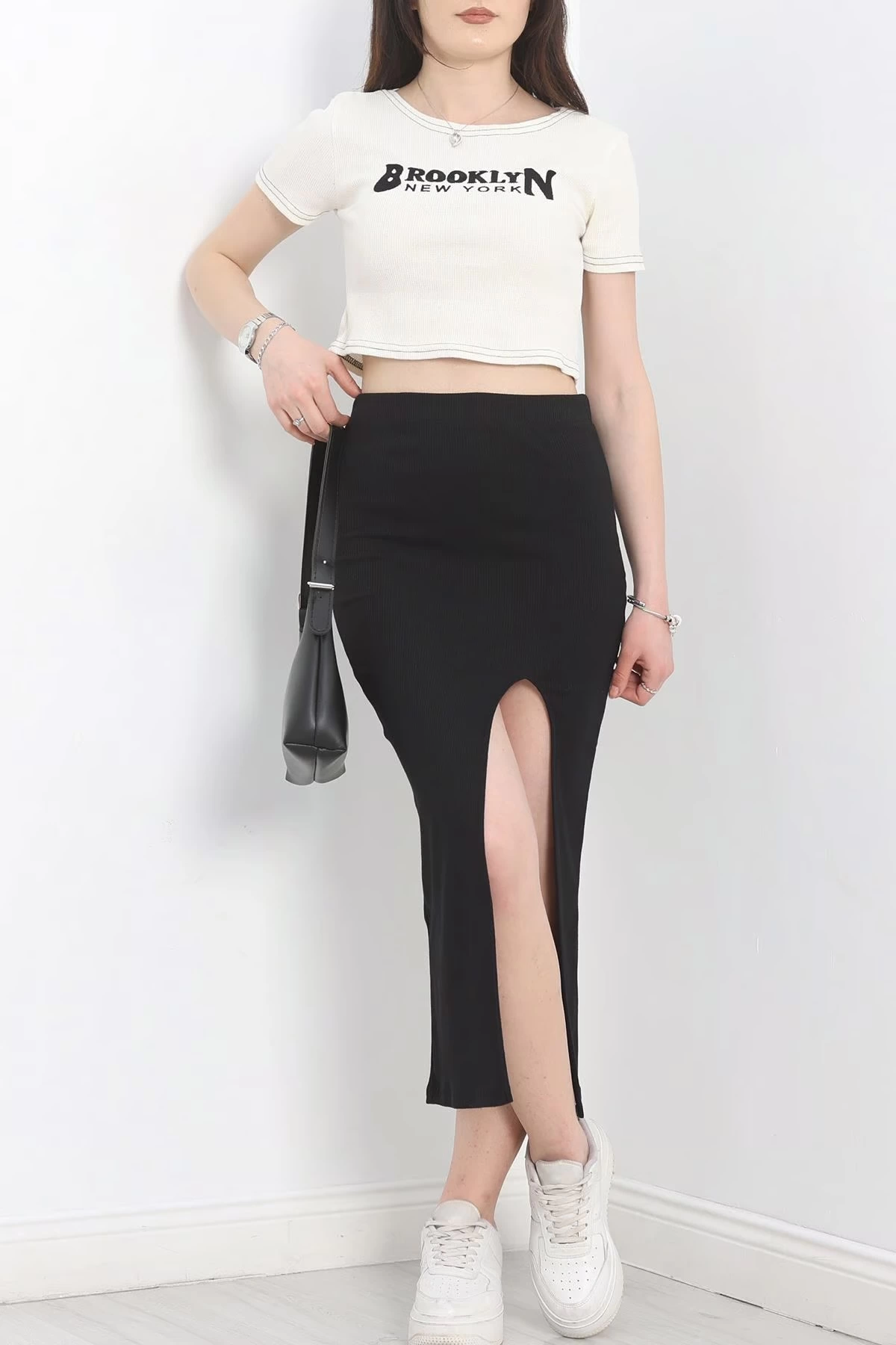Crop Ceketli Ve Pile Etekli Garnili Takım 10111