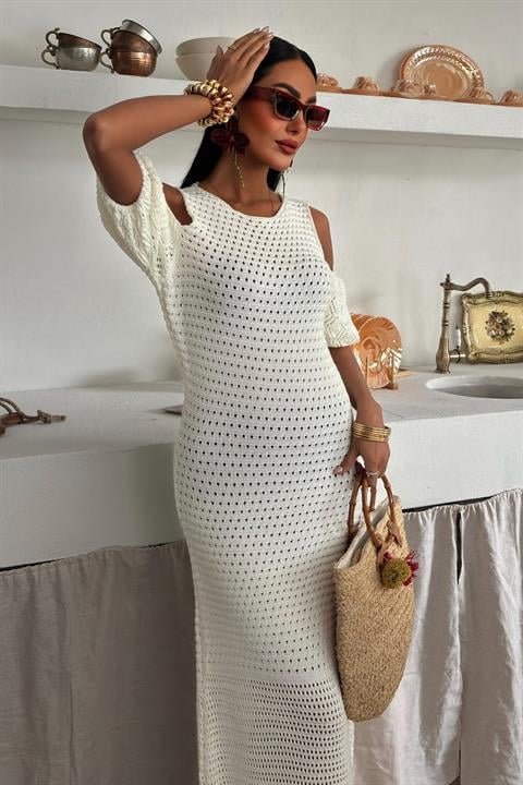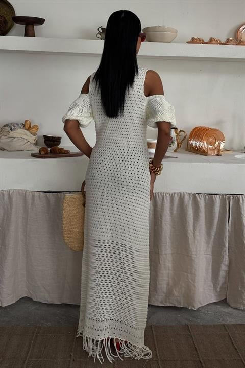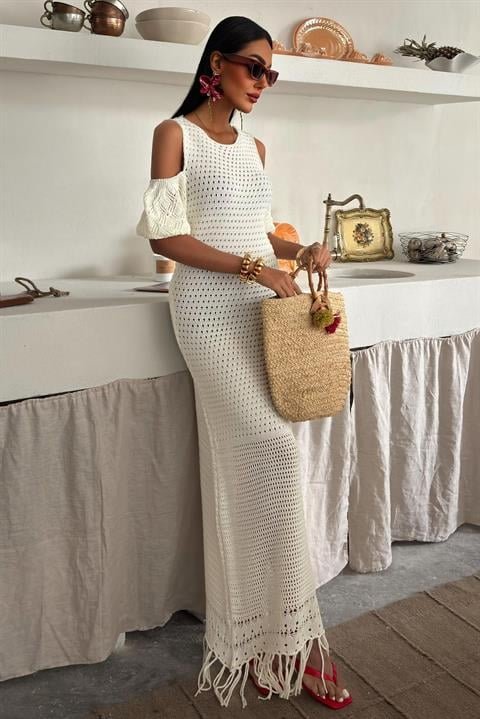 Omuz Detaylı Etek Ücü Püsküllü Triko Elbise 2862