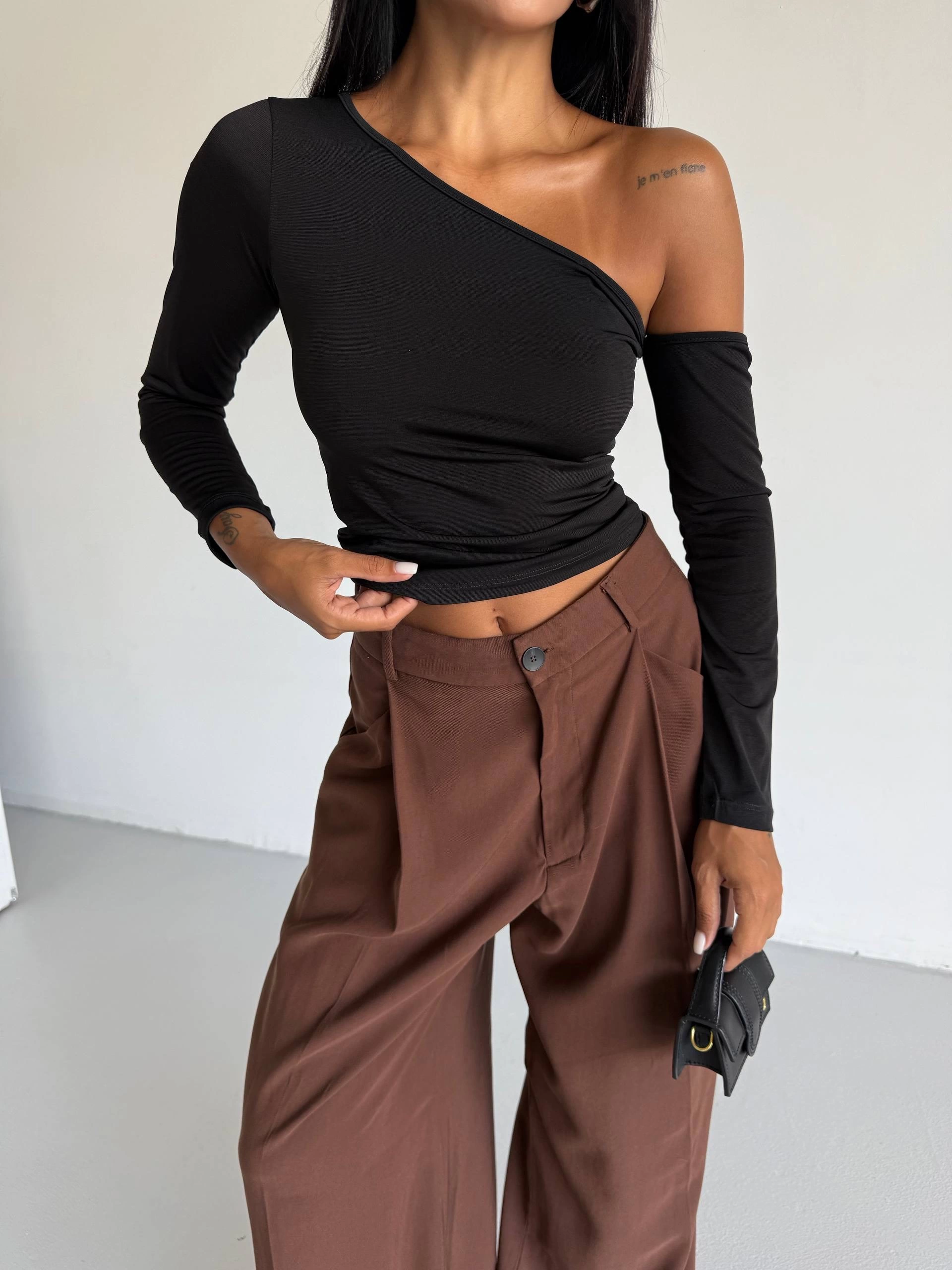 Kadın Tek Omuzdan Açık Uzun Kollu Modal Bluz