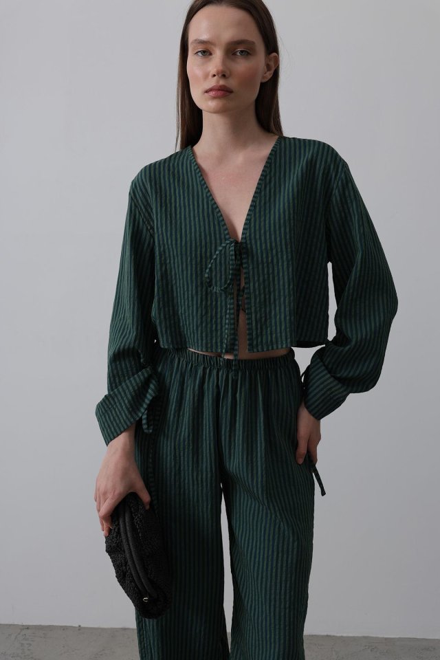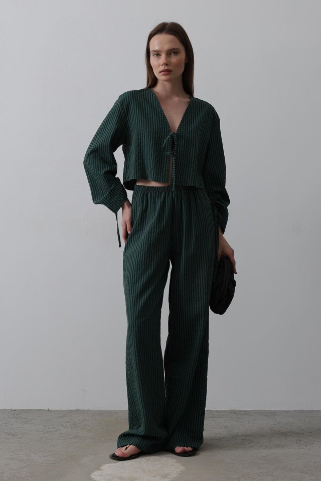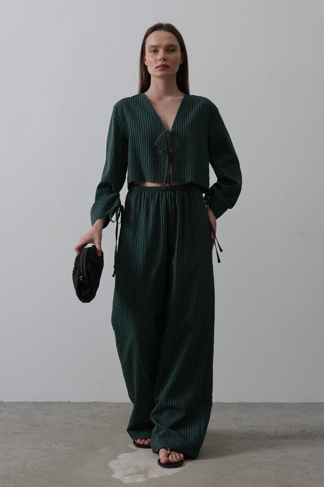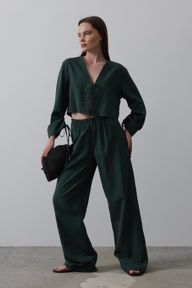 Crop Ceketli Ve Pile Etekli Garnili Takım 10111