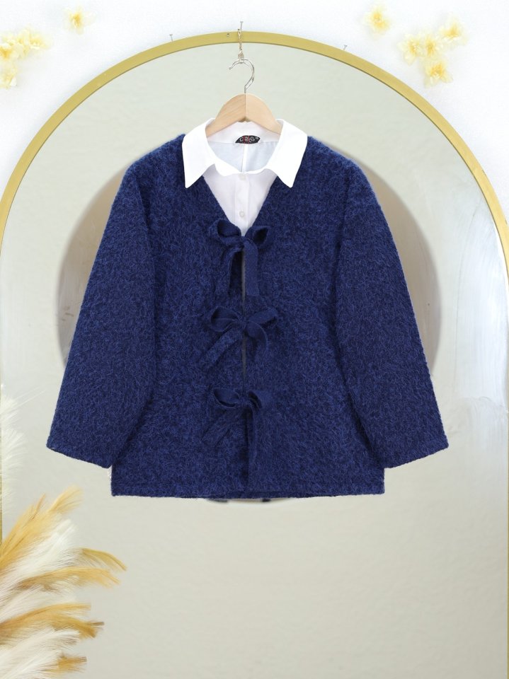 Önü Bağlamalı Kırçıllı Kaşe Ceket -Laci
