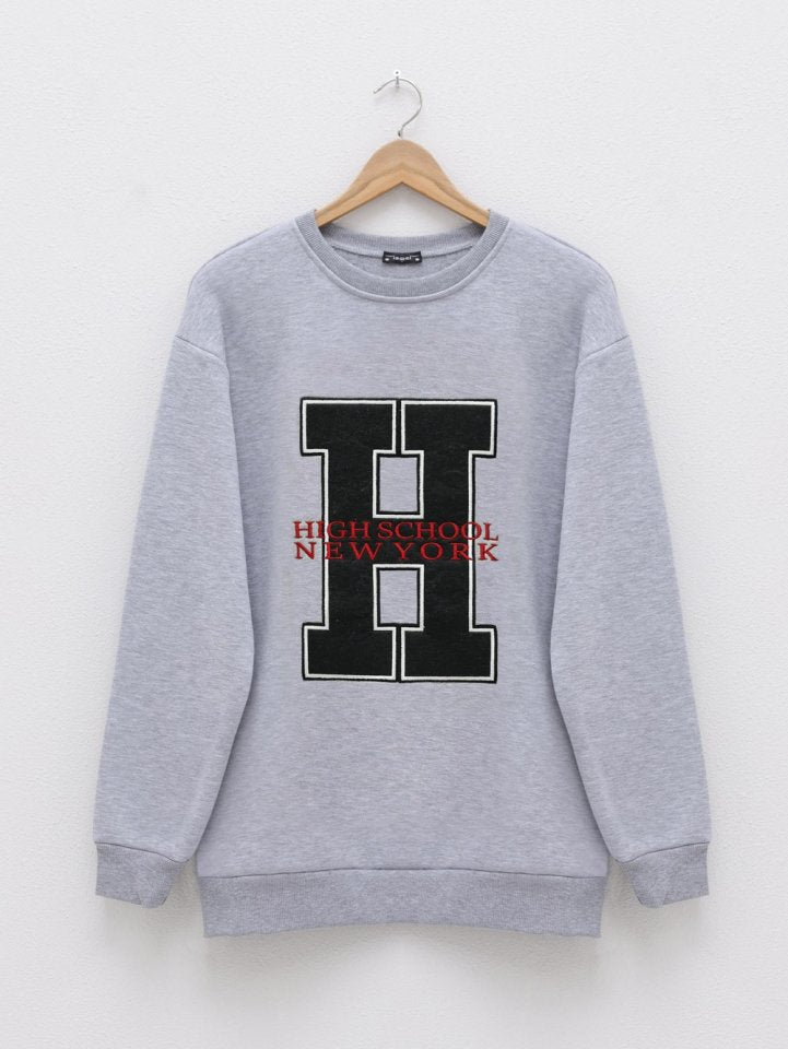 Önü Nakışlı Bisiklet Yaka Sweat Tunik -Gri