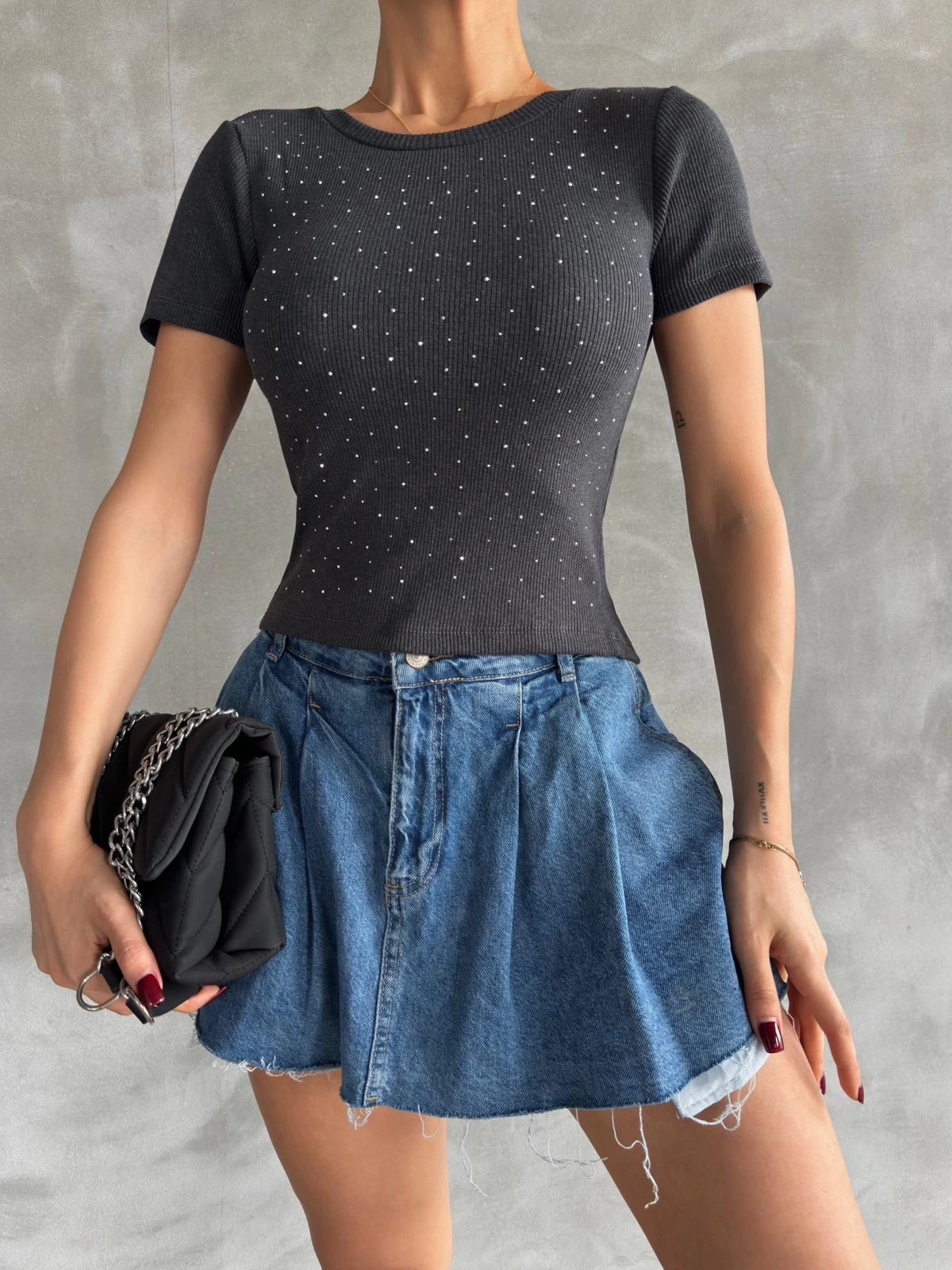 Crop Ceketli Ve Pile Etekli Garnili Takım 10111